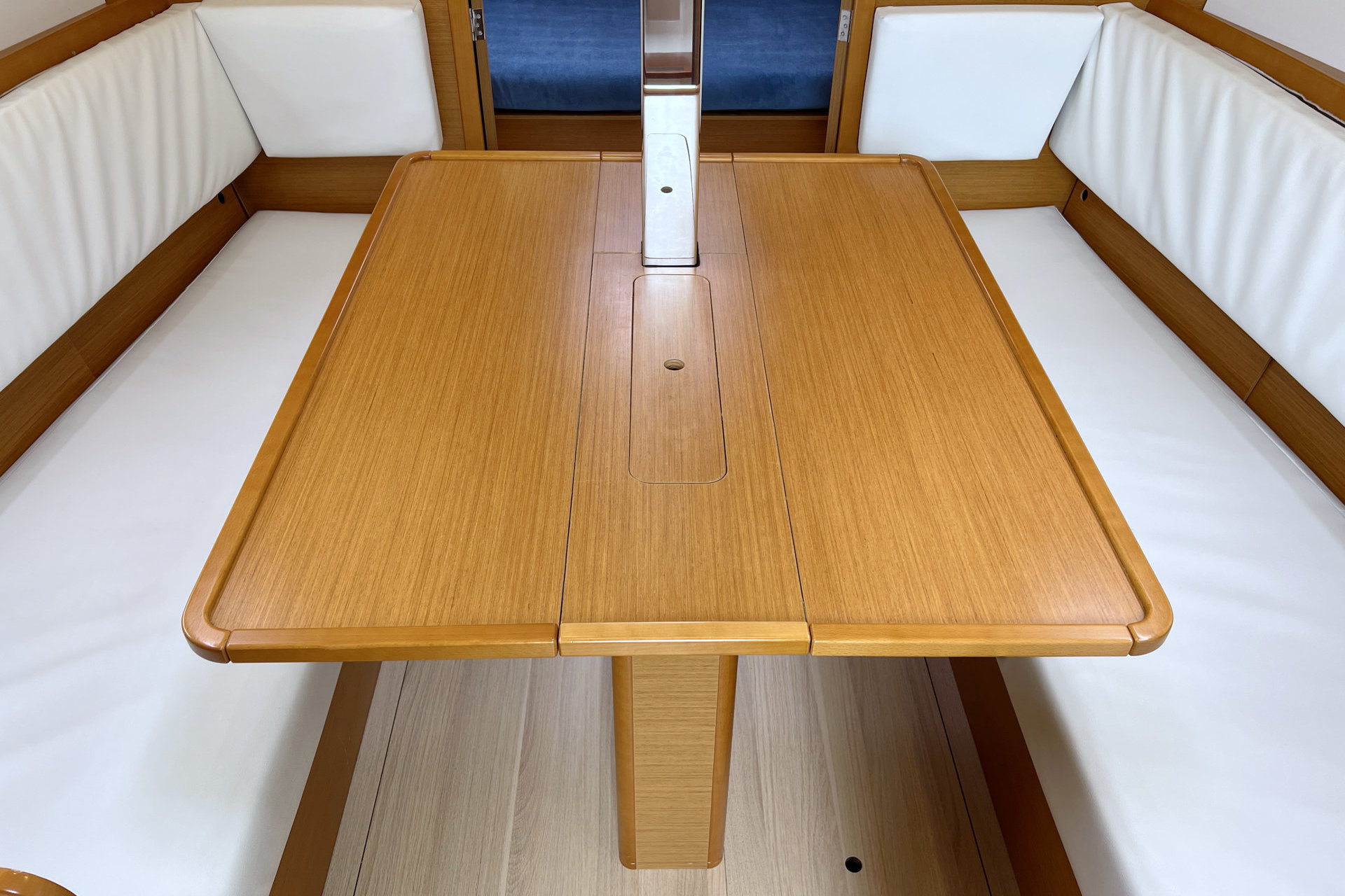 | Safety | AIS Empfänger, Ankerball, Automatikwesten, Autopilot, Bilgepumpe, Bootsmannstuhl, Bordwerkzeug, Bugstrahlruder, Feuerlöscher, Handscheinwerfer, Rettungsring |