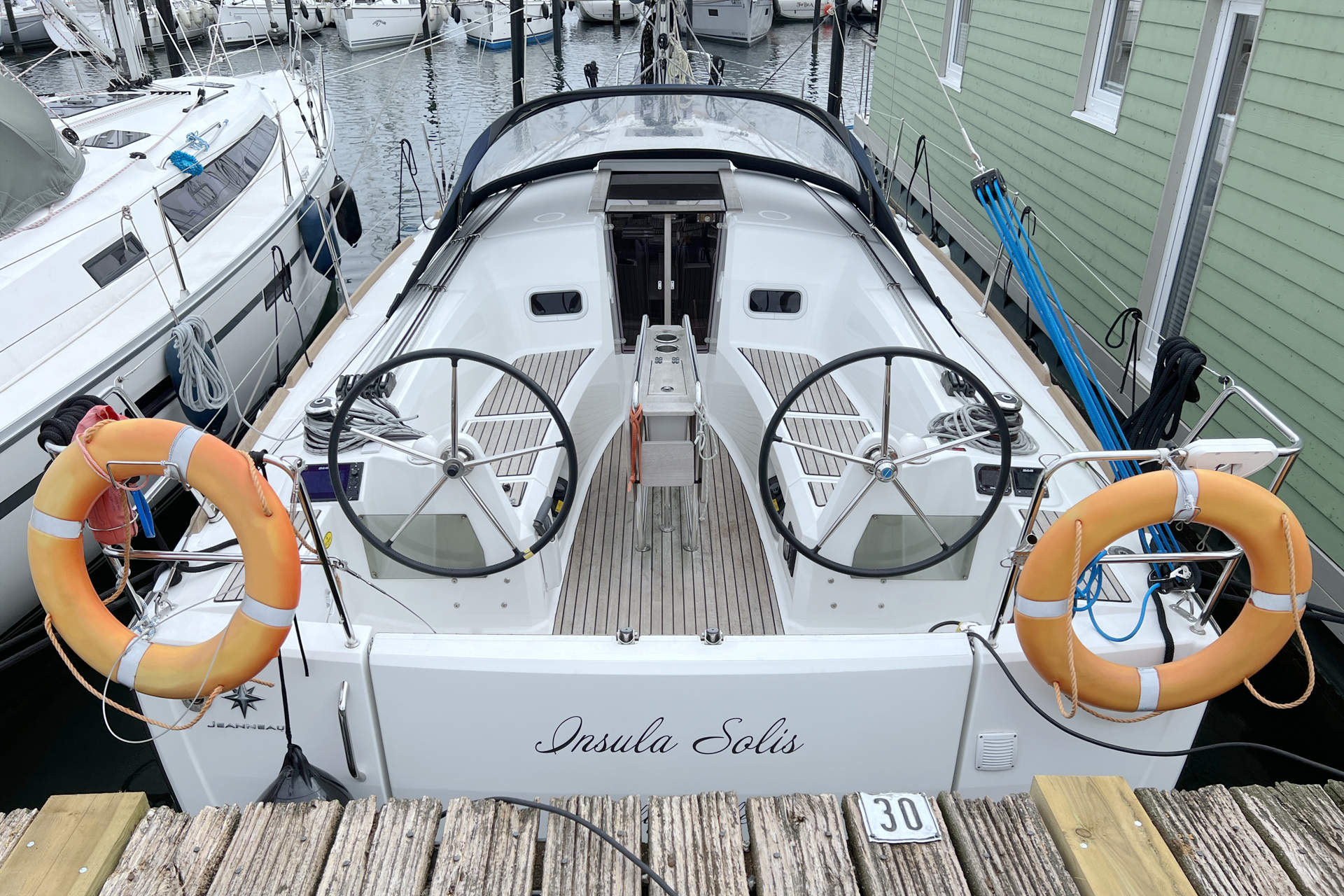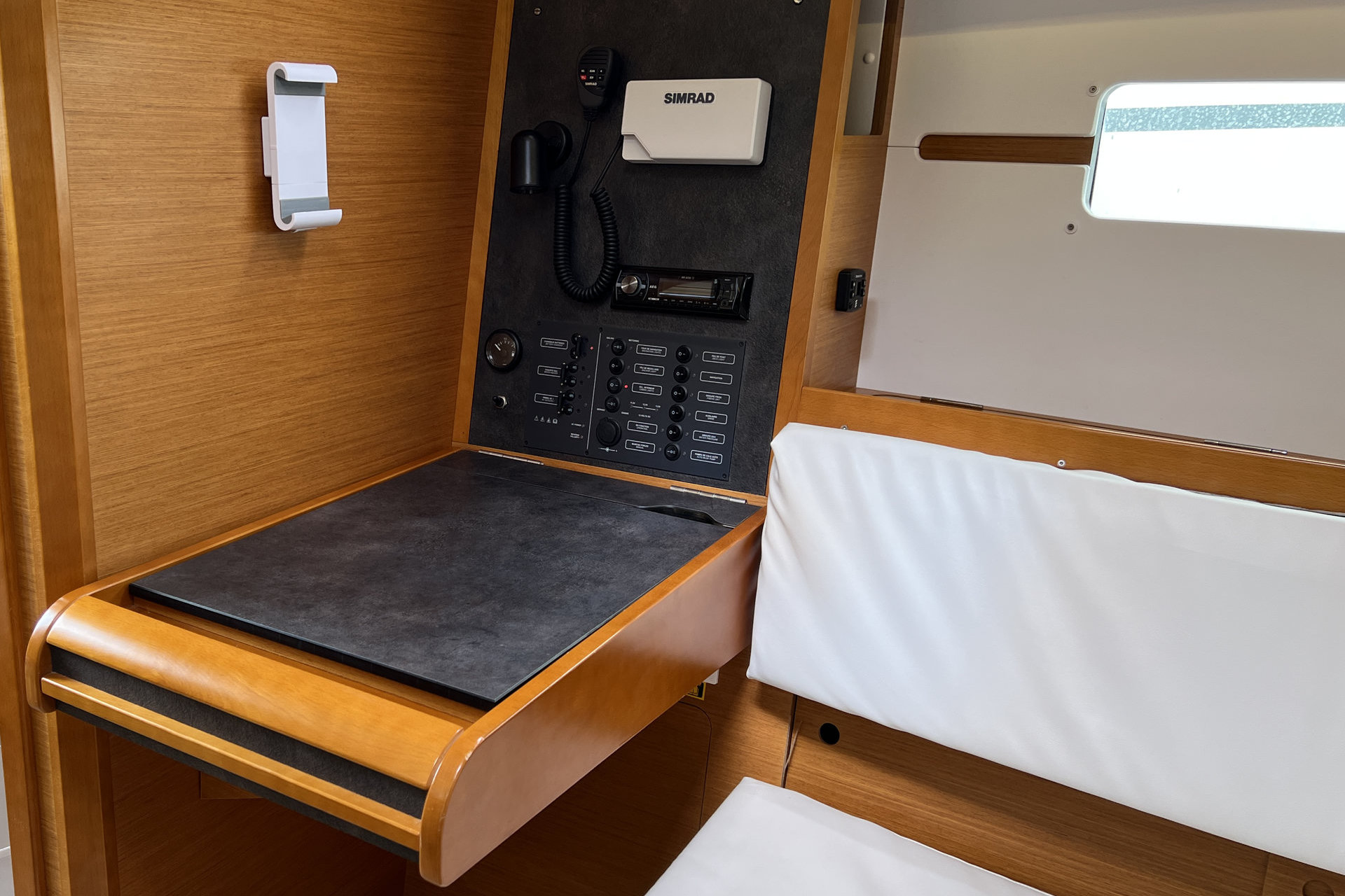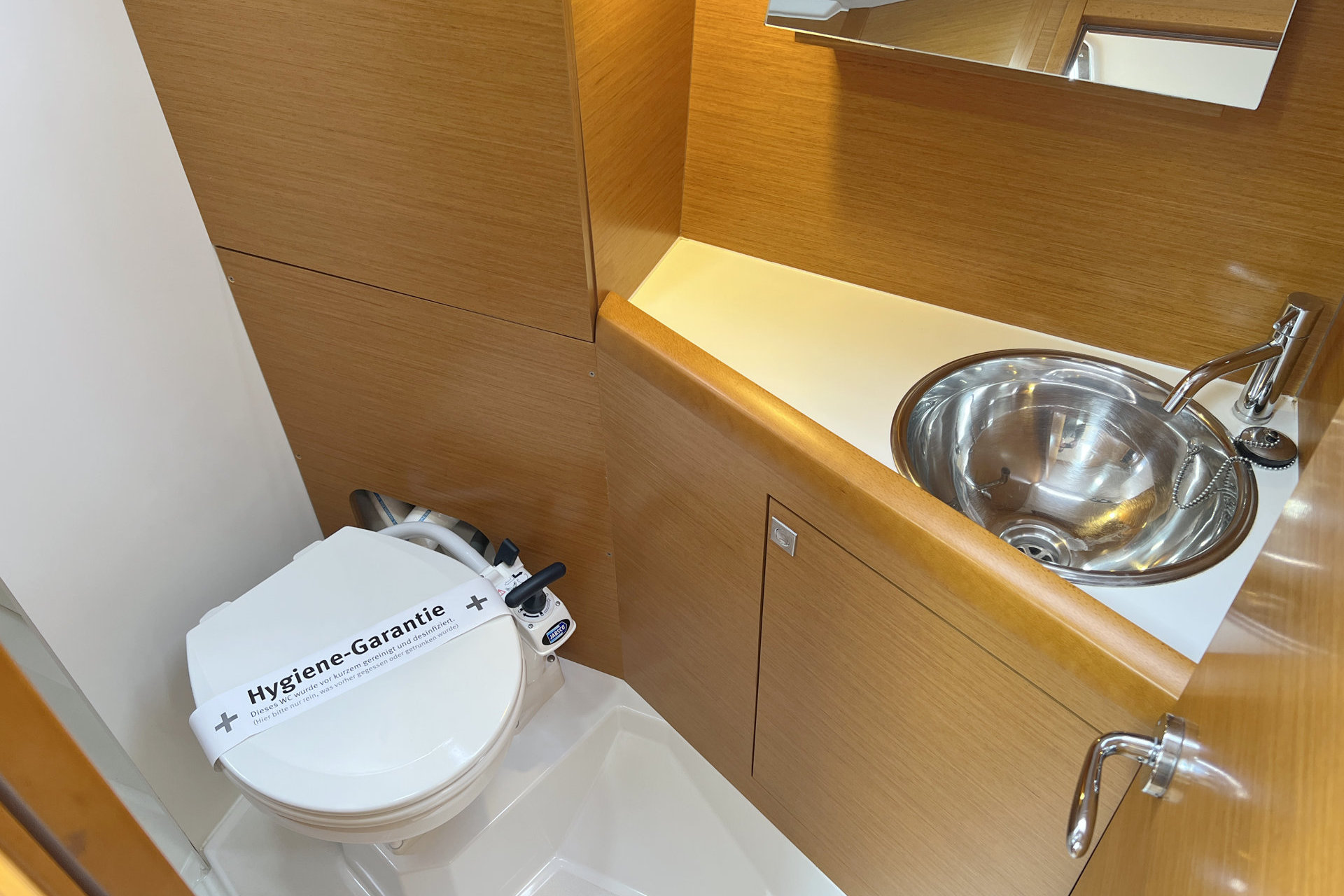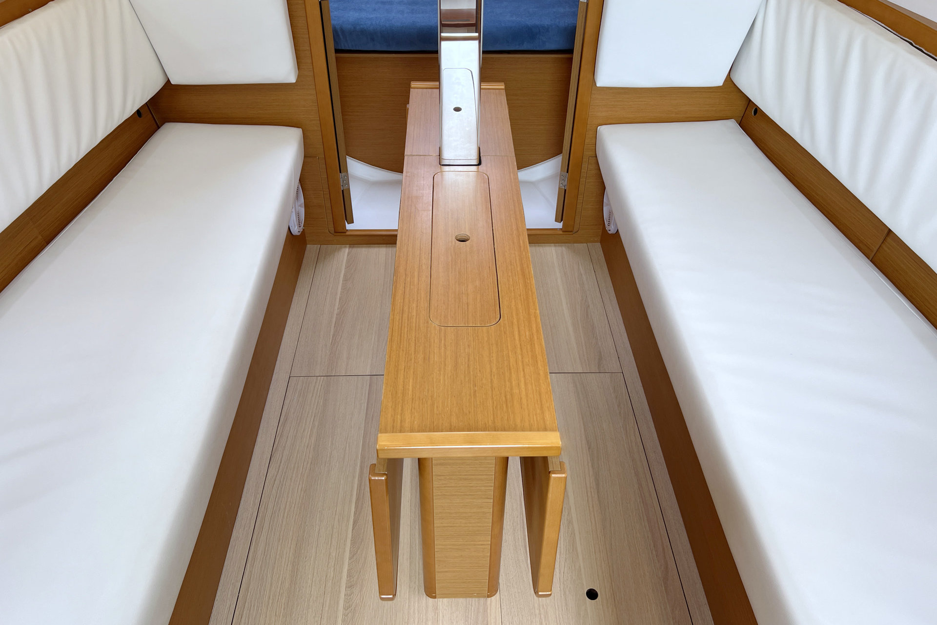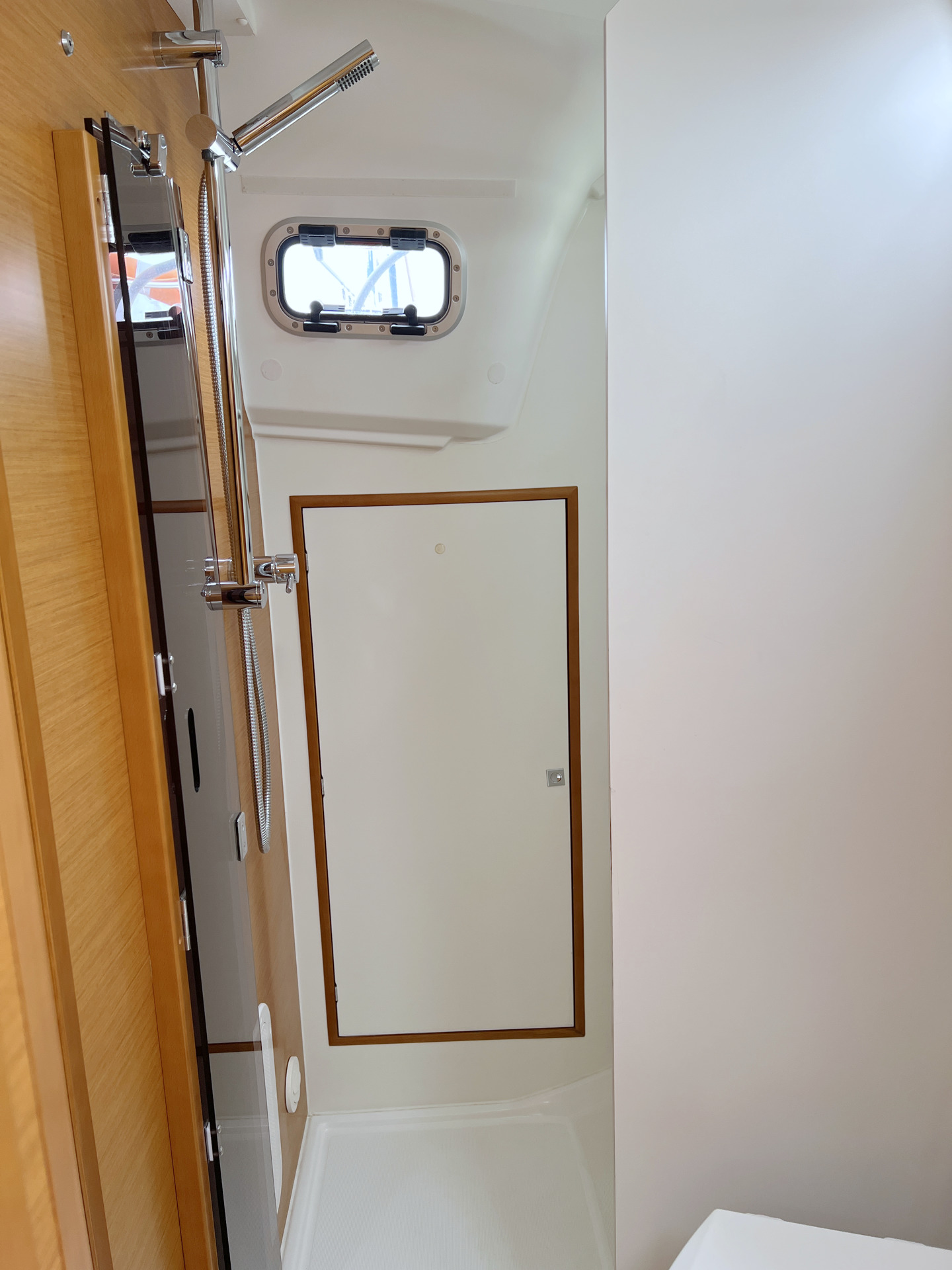 | Outside | Badeleiter, Badeplattform, Cockpittisch, elektr. Ankerwinsch, Sprayhood, Teak im Cockpit |