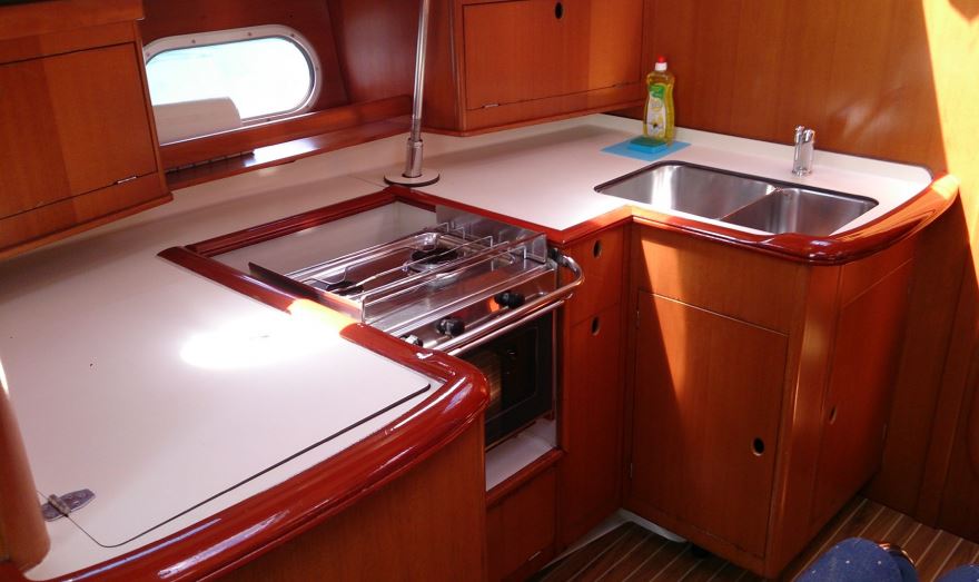 | Outside | Anker mit Kette, Badeleiter, Biminitop, Bootshaken, Cockpitpolster, Cockpittisch, elektr. Ankerwinsch, Fender, Festmacherleinen, Gangway, Heckdusche, Sprayhood, Wantenschneider, Windex, Winschen |
