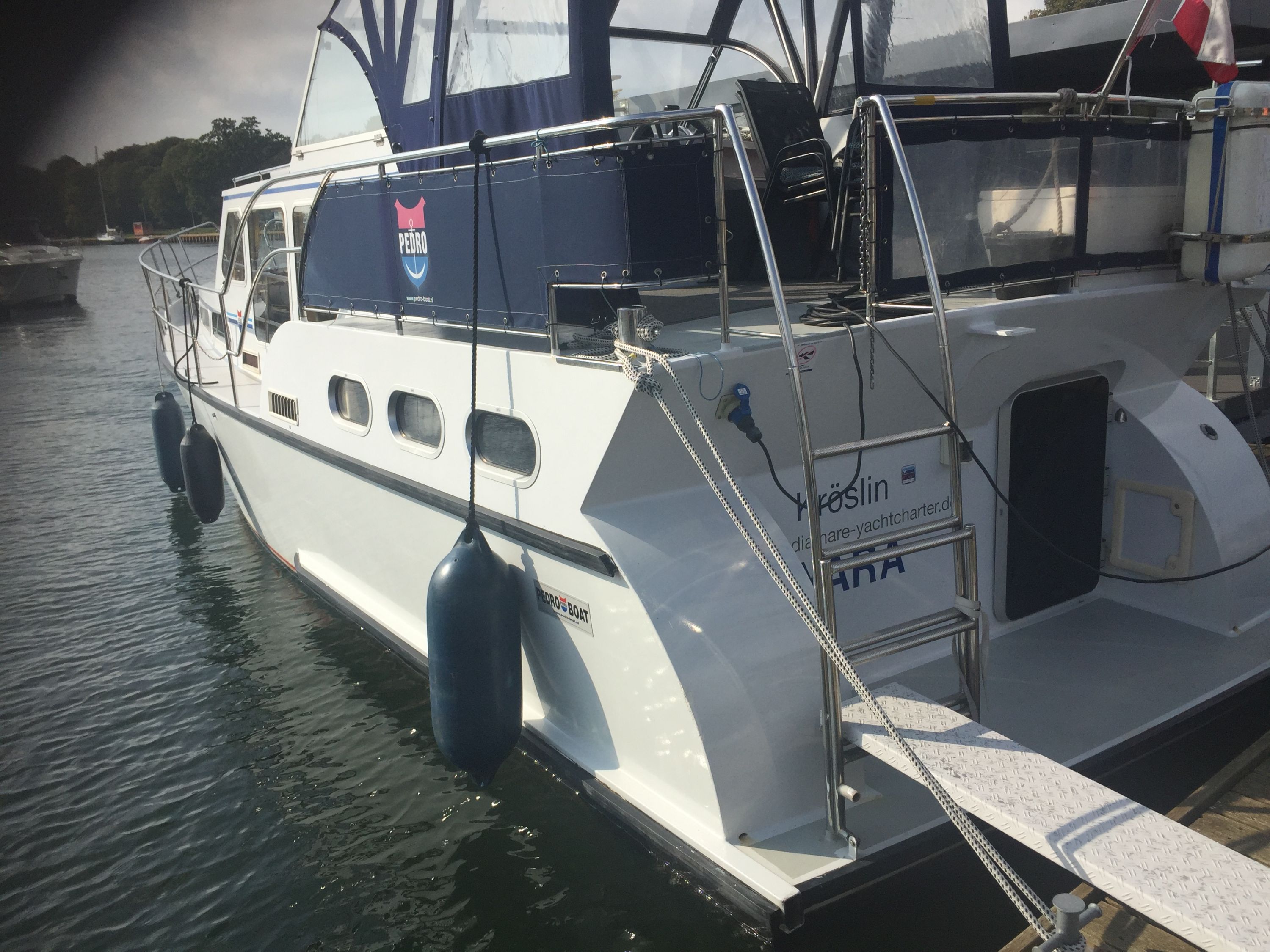 | Outside | 220 V-Landanschluss, Anker mit Kette, Badeleiter, Badeplattform, Bootshaken, Fender |