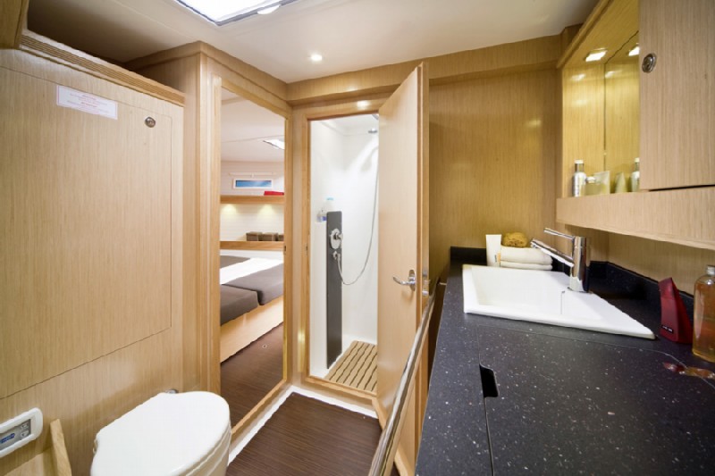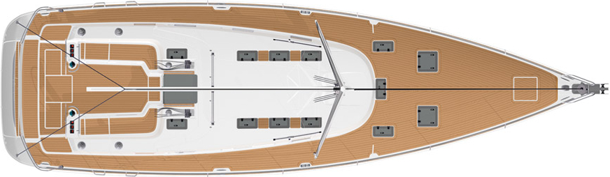 | Outside | 220 V-Landanschluss, Anker mit Kette, Bootshaken, elektr. Ankerwinsch, Fallwinschen, selbstholend, Fender, Festmacherleinen, Genuawinschen, selbstholend, Pflugscharanker, Sprayhood, Windex |