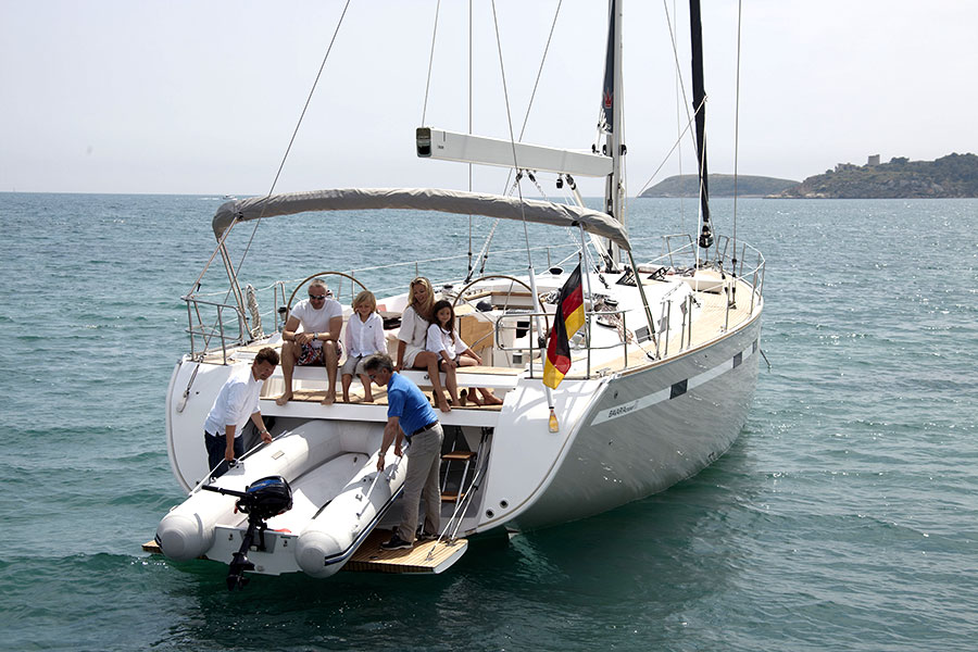 | Safety | Automatikwesten, Autopilot, Bootsmannstuhl, Bordwerkzeug, Bugstrahlruder, elektr. Bilgepumpe, Feuerlöscher, Handbilgepumpe, Nebelhorn, Notsignale, Rettungsinsel, Rettungsring, Taschenlampe, UKW-Funk |