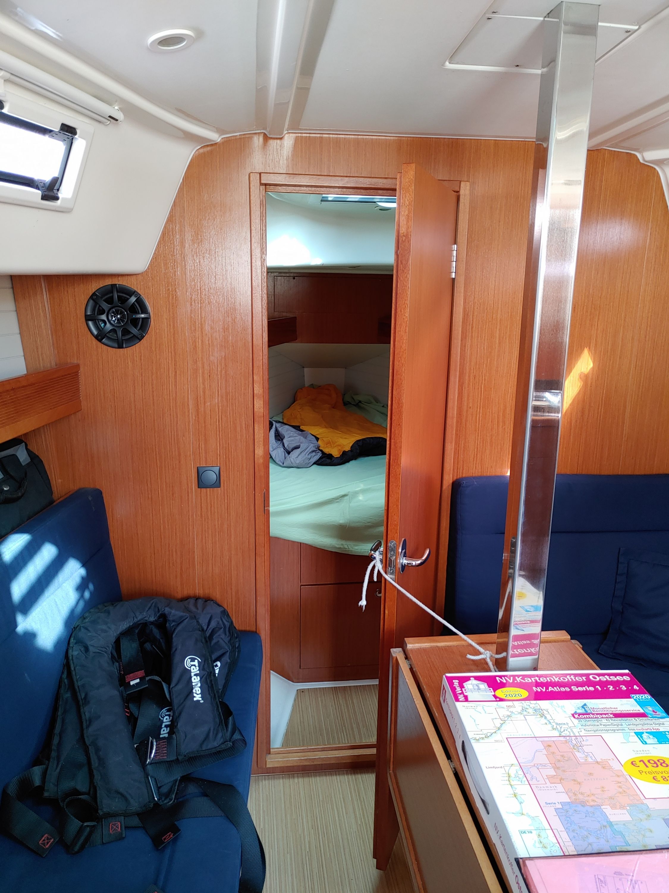 | Safety | Automatikwesten, Autopilot, Bootsmannstuhl, Bordwerkzeug, elektr. Bilgepumpe, Feuerlöscher, Handbilgepumpe, Nebelhorn, Notsignale, Rettungsinsel, Taschenlampe, UKW-Funk m. DSC |