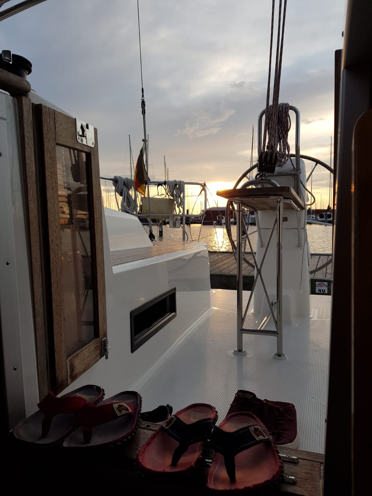 | Safety | AIS Empfänger (teilw.), Automatikwesten, Autopilot (teilw.), Bootsmannstuhl, Bordwerkzeug, Bugstrahlruder (teilw.), Feuerlöscher, Handbilgepumpe, Nebelhorn, Notsignale, Rettungsinsel, Sicherheitsausrüstung, Taschenlampe, UKW-Funk m. DSC |