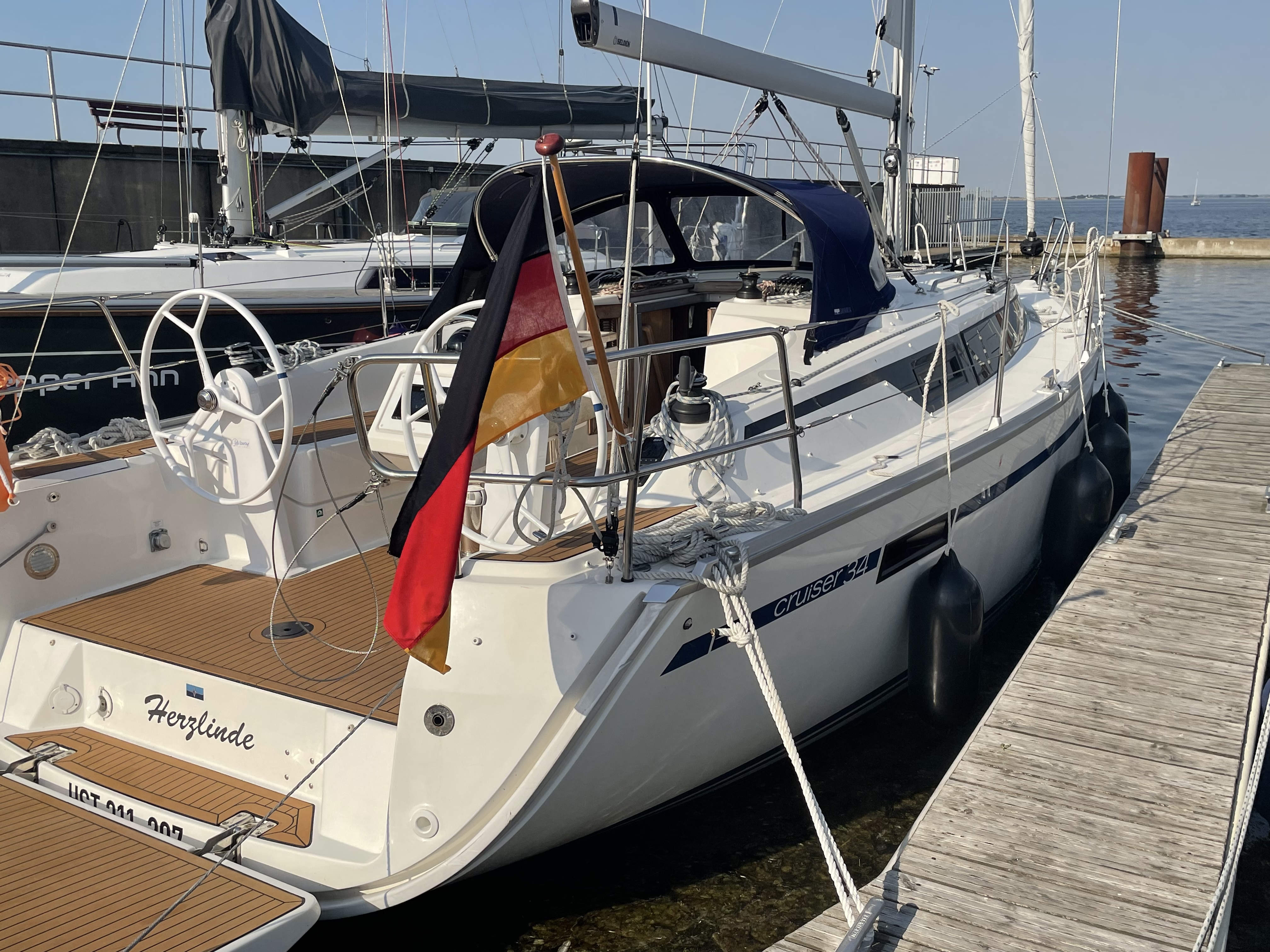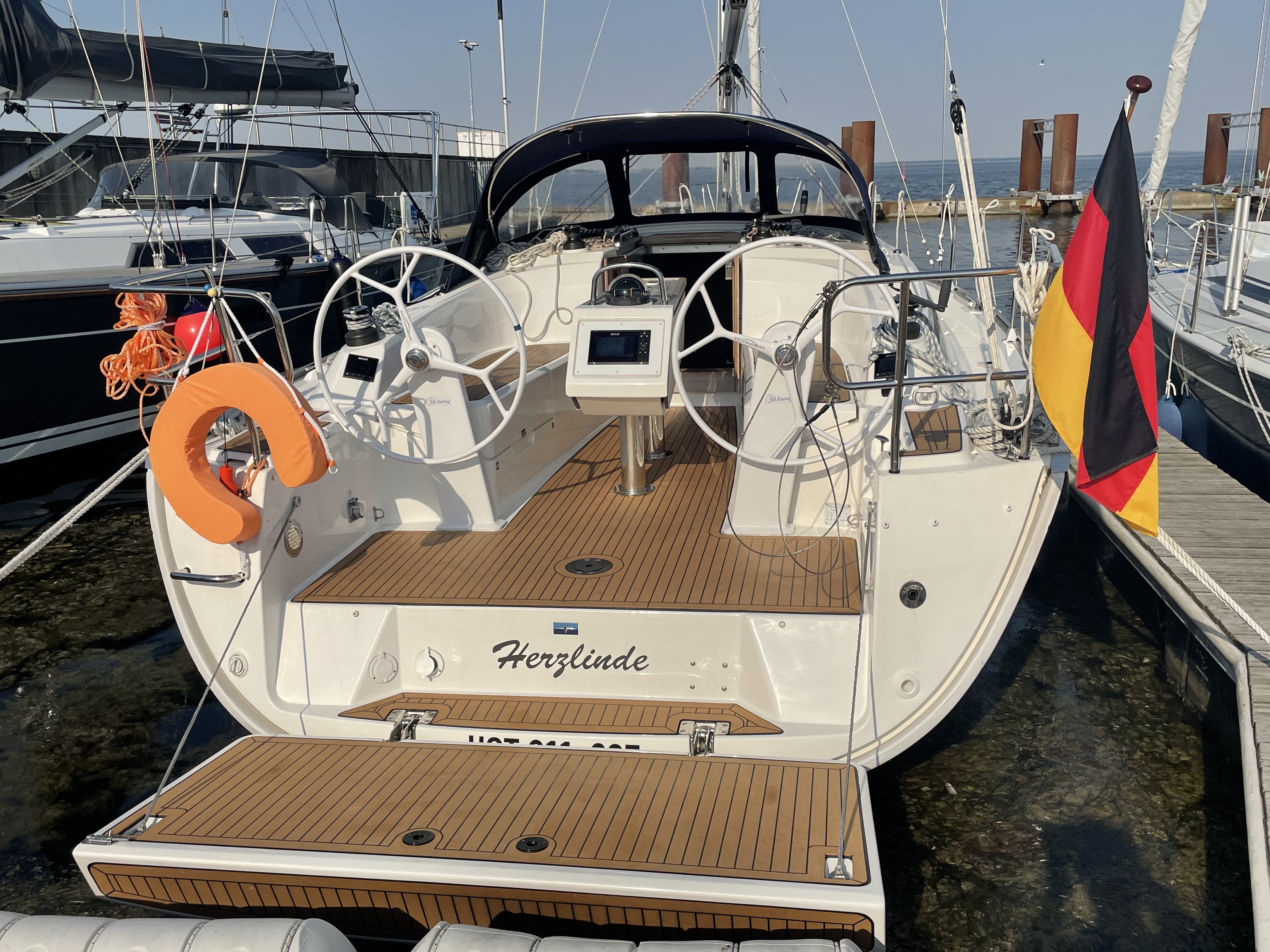 | Safety | AIS Empfänger, Automatikwesten, Autopilot, Bootsmannstuhl, Bordwerkzeug, Bugstrahlruder (teilw.), elektr. Bilgepumpe, Feuerlöscher, Handbilgepumpe, Nebelhorn, Notsignale, Rettungsinsel, Taschenlampe, UKW-Funk m. DSC |