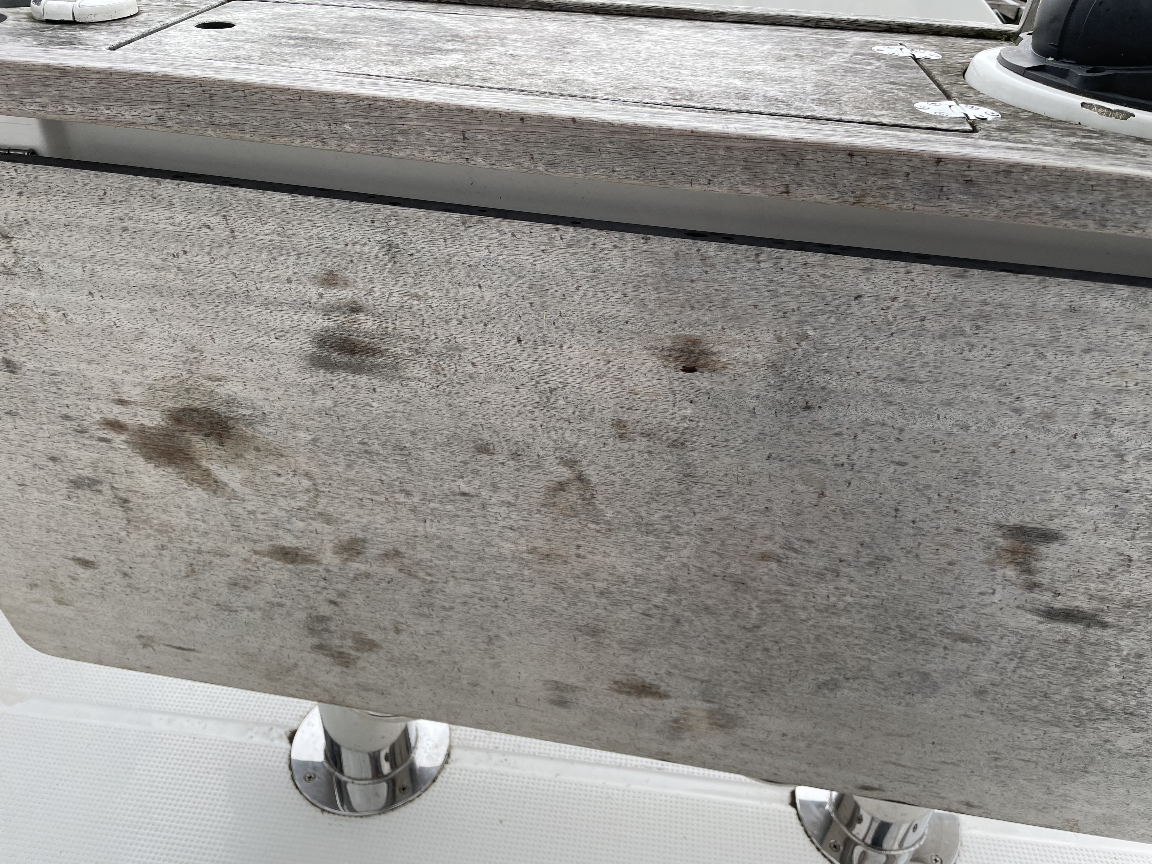 Die achterliche Steuerbordtoilette roch erheblich nach Fäkalien. Der innere Rand der Toilette hatte ringsherum Reste von Seegras. Offensichtlich nicht gereinigt. Nach der ersten Nacht beim Duschen lief das Wasser nicht ab. Es wurde durch den Service festgestellt, dass die Sumpfpumpe defekt ist. Weiterhin war das Landstromkabel defekt und wurde nach der Übernahme ersetzt. Der Esstisch im Außenbereich war absolut ungepflegt, voller Flecken und Moosbewuchs! Im Herd war kein Backblech vorhanden. Unsere Fisch mussten wir in einer selbstgebastelten Alupfanne garen. Das Boot führt keinen Wasserschlauch mit. Wir haben uns jeweils in den Marinas um einen Schlauch kümmern müssen.