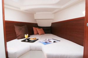 | Outside | 220 V-Landanschluss, Bootshaken, CQR-Anker, Fallwinschen, selbstholend, Fender, Festmacherleinen, Heckanker, Sprayhood, Windex |