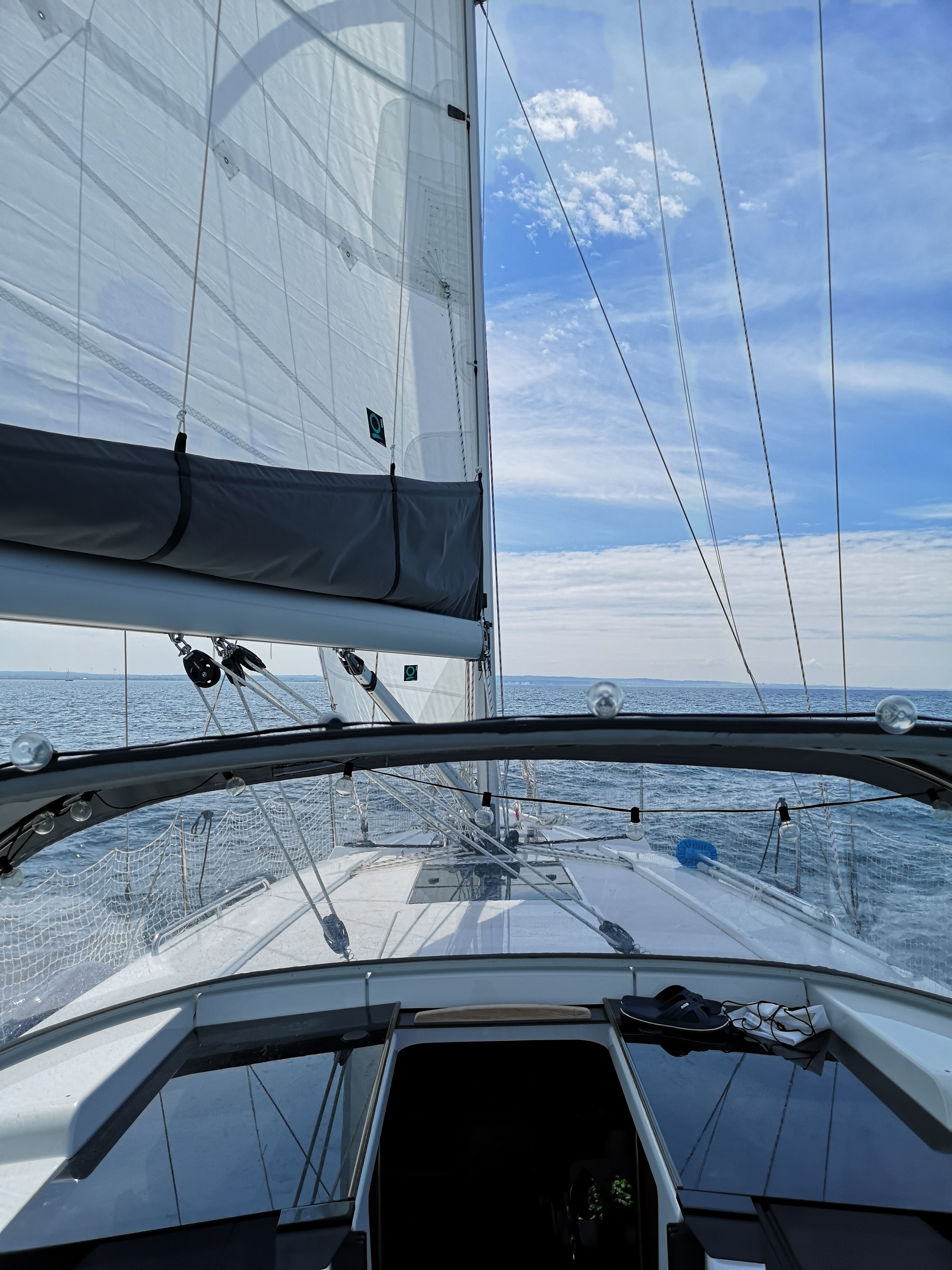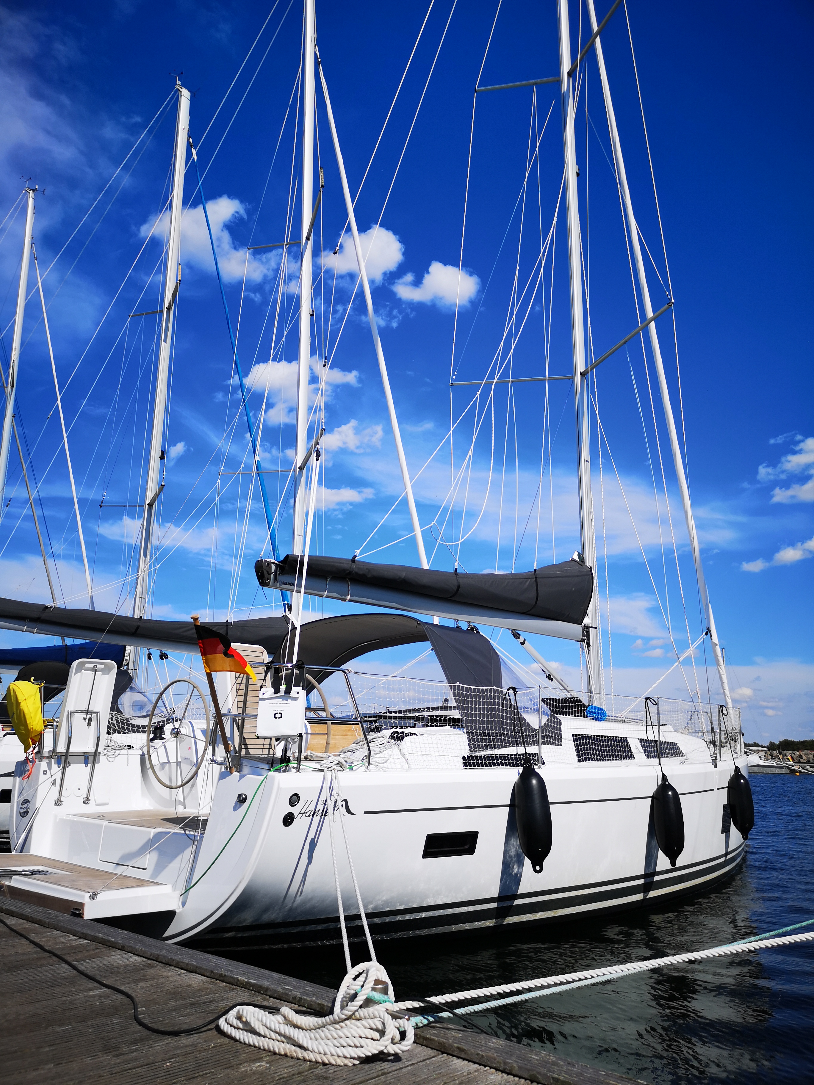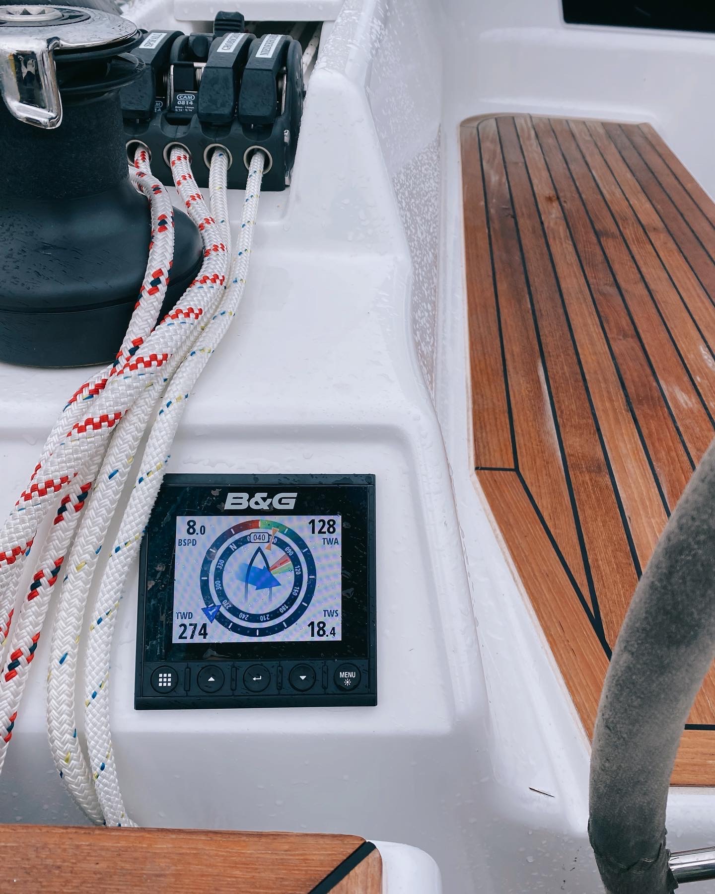 | Navigation | Echolot, Fernglas, GPS mit Kartenplotter im Cockpit, Hafenhandbücher, Handpeilkompass, Kompass, Navigationsbesteck, Seekarten, Sumlog, Windmesser |