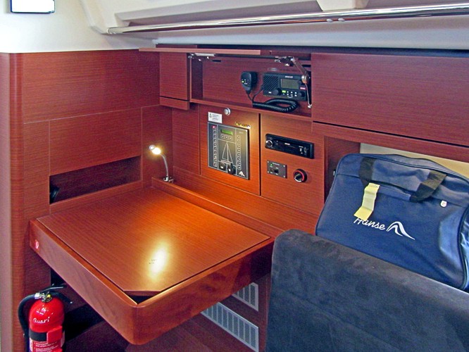 | Safety | Automatikwesten, Autopilot, Bootsmannstuhl, Bordwerkzeug, elektr. Bilgepumpe, Feuerlöscher, Handbilgepumpe, Nebelhorn, Notsignale, Rettungsinsel, Rettungsring, Taschenlampe, UKW-Funk m. DSC |