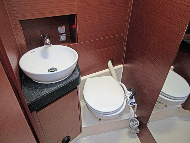 | Outside | 220 V-Landanschluss, Bootshaken, CQR-Anker, elektr. Ankerwinsch, Fallwinschen, selbstholend, Fender, Festmacherleinen, Heckanker, Sprayhood, Windex |