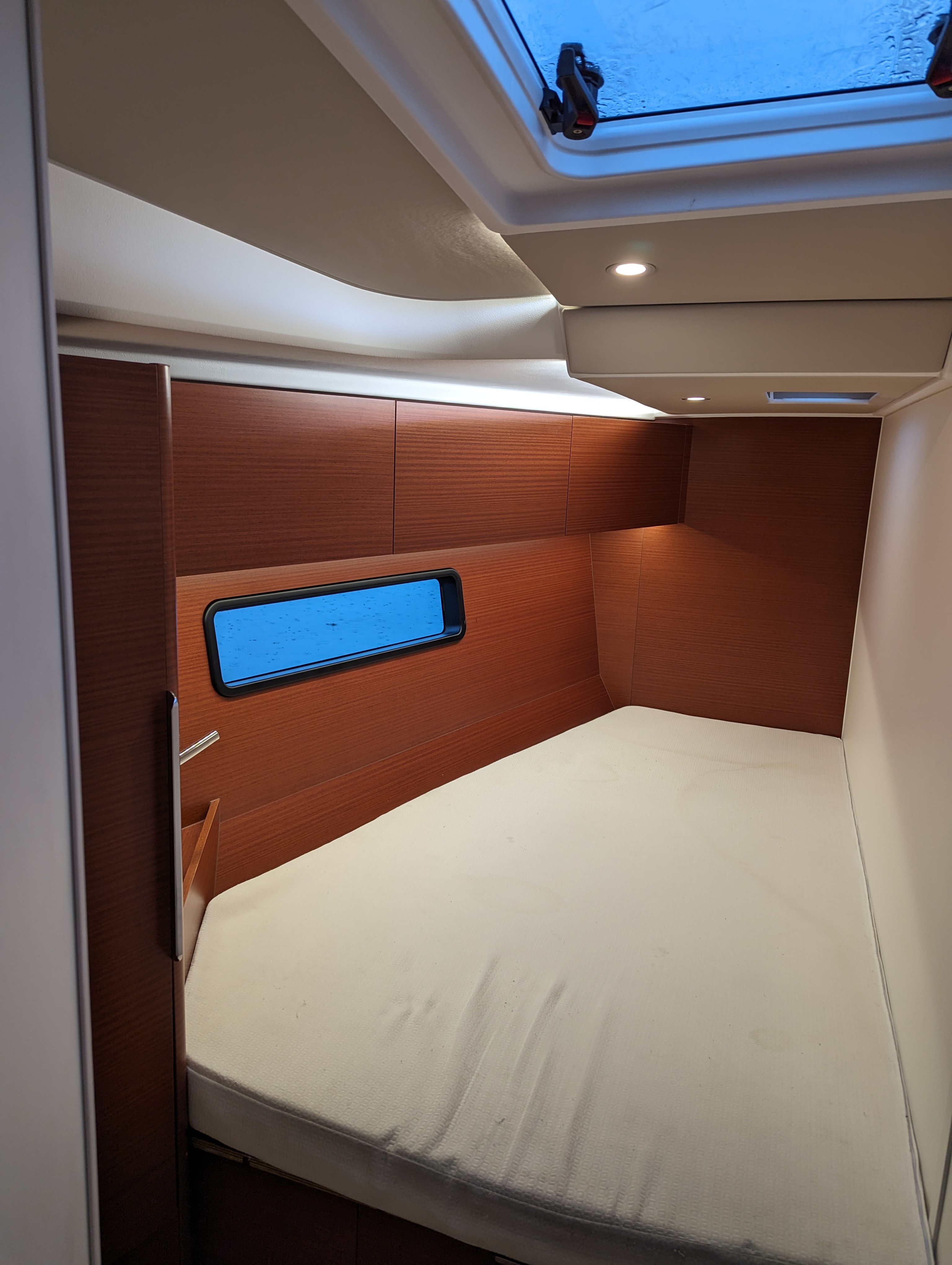 | Outside | 220 V-Landanschluss, Bootshaken, CQR-Anker, elektr. Ankerwinsch, Fallwinschen, selbstholend, Fender, Festmacherleinen, Genuawinschen, selbstholend, Heckanker, Sprayhood, Windex |