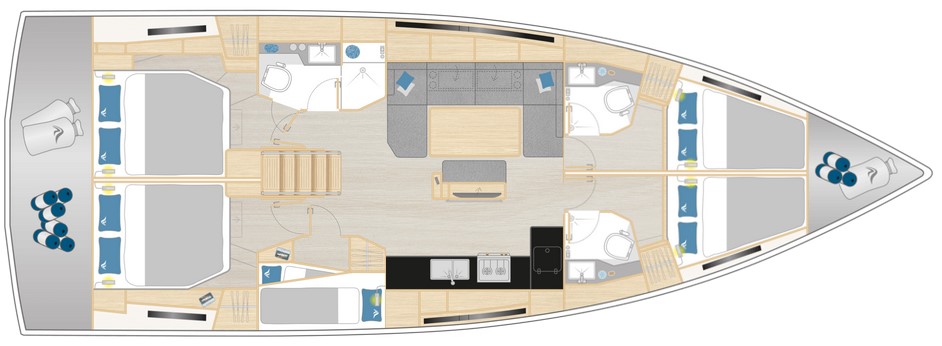| Kabinen: | 4 | Kojen: | 8+1 |