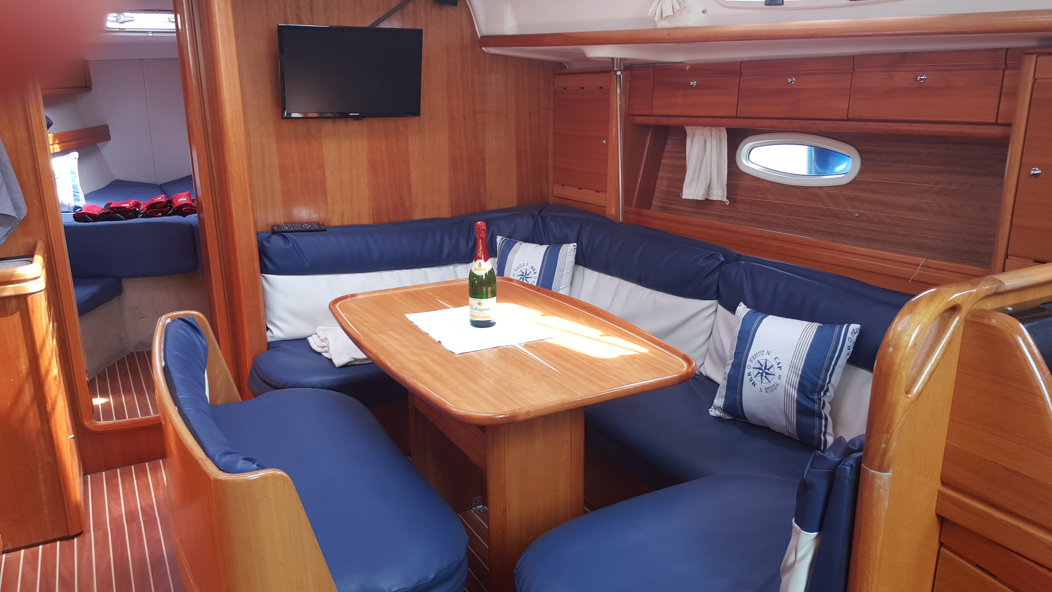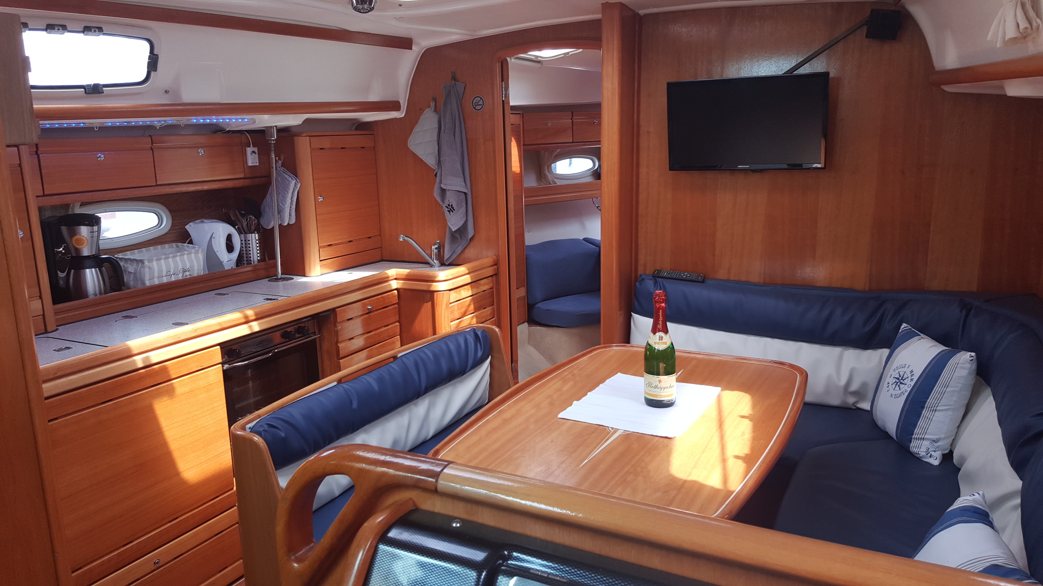| Safety | AIS Empfänger, Ankerball, Automatikwesten, Autopilot, Blitzboje, Bootsmannstuhl, Bordapotheke, Bordwerkzeug, Bugstrahlruder, elektr. Bilgepumpe, Feuerlöscher, Handbilgepumpe, Handfunkgerät, Lifebelts, Navtex, Nebelhorn, Notpinne, Notsignale, Radarreflektor, Rettungsinsel, Rettungsring, Taschenlampe, UKW-Funk m. DSC, Zweitanker |