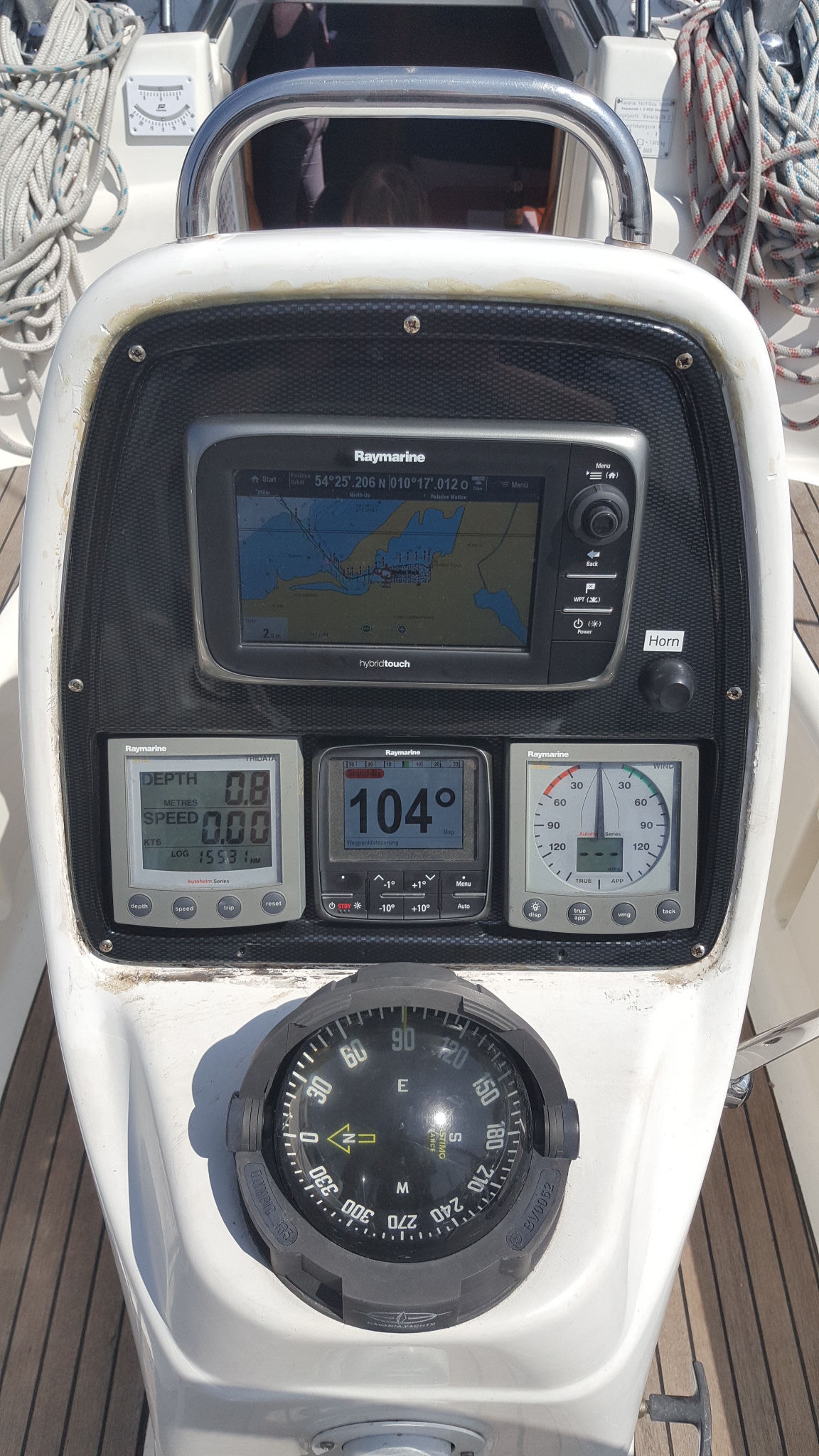 | Navigation | Barometer, Echolot, Farbkartenplotter, Fernglas, Fischfinder, GPS, Hafenhandbücher, Handpeilkompass, Kartenplotter im Cockpit, Kompass, Radar, Seekarten, Steuerkompass, Sumlog, Windmesser |
