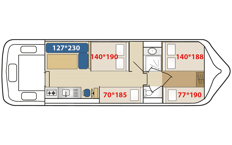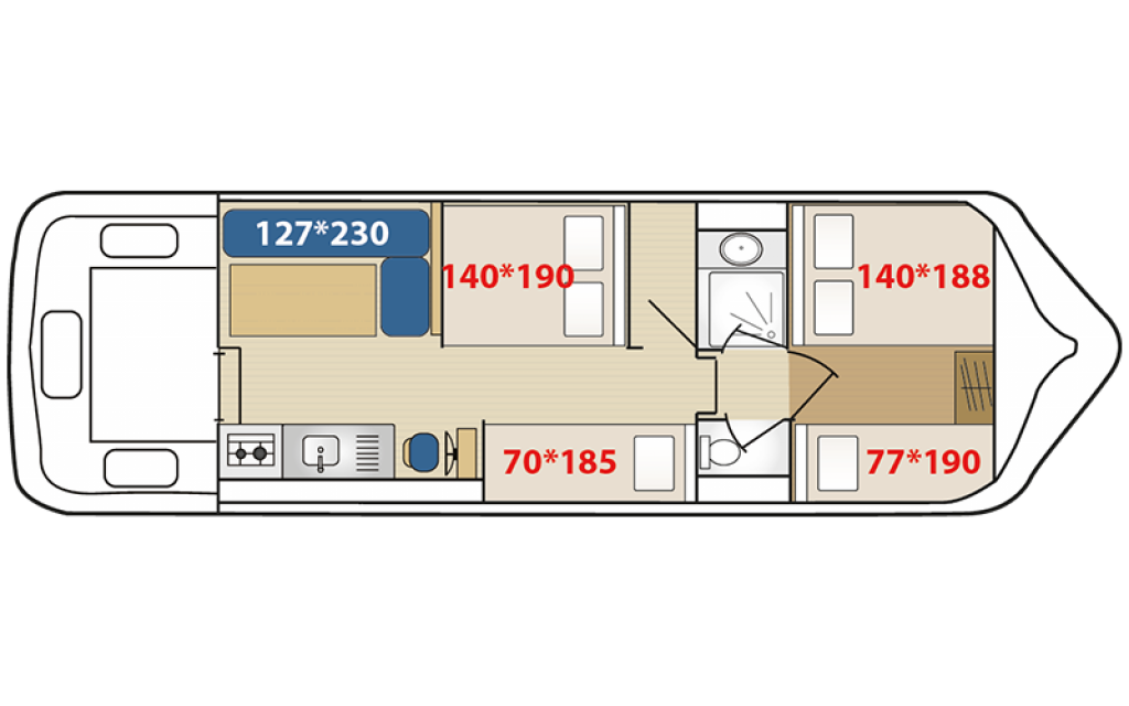 | Kabinen: | 2 | Kojen: | 4+2 |