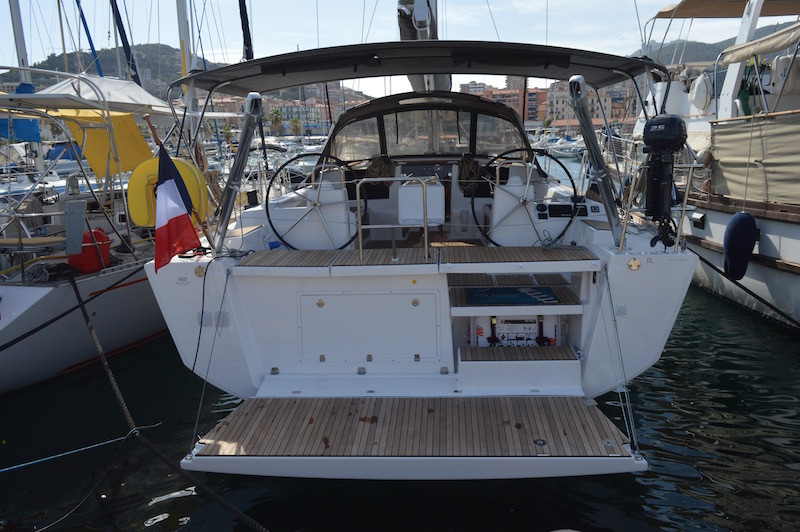 | Outside | Badeplattform, Biminitop, Cockpitdusche warm/kalt, Cockpitpolster, Cockpittisch, Cockpittisch mit Eisbox, Fernsteuerung für elektr. Ankerwinsch, Grill |
