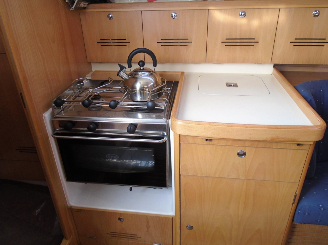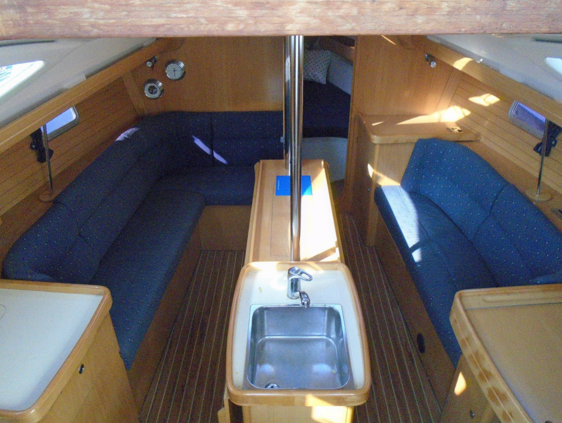 | Outside | Badeleiter, Cockpitdusche, elektr. Ankerwinsch, Solaranlage, Sprayhood |