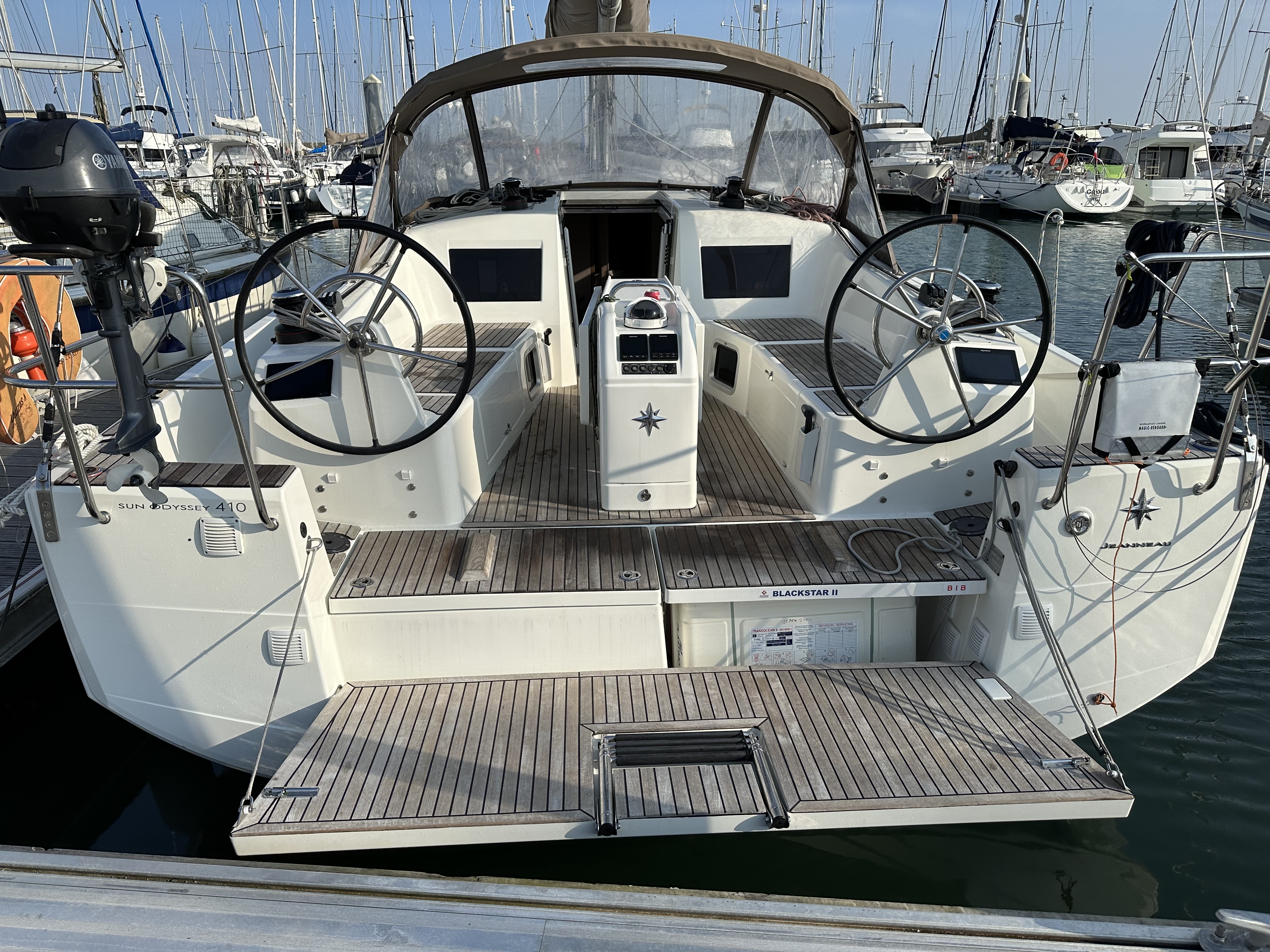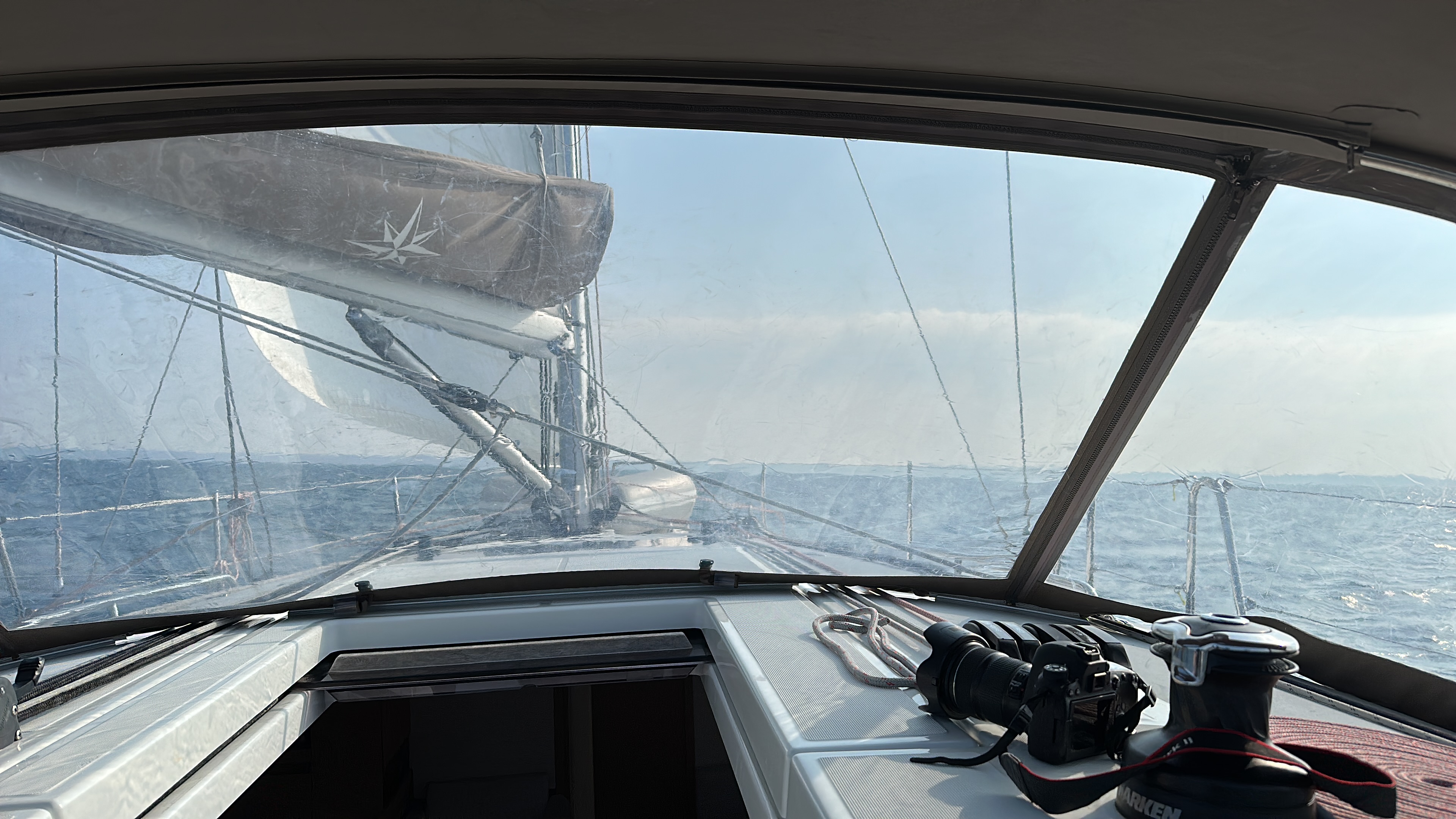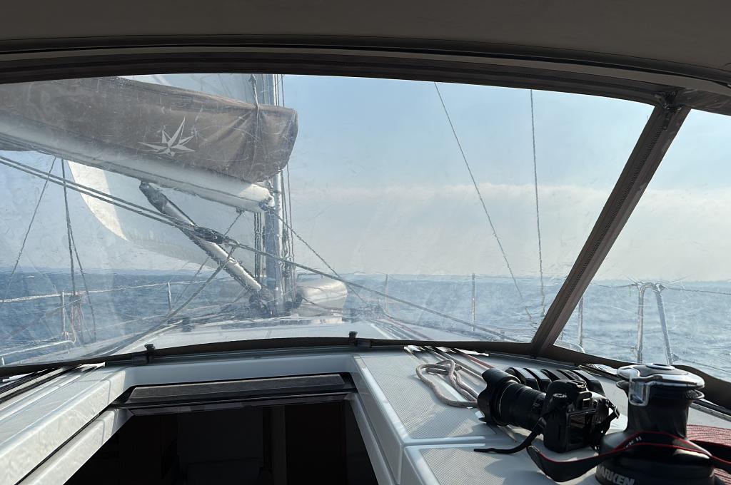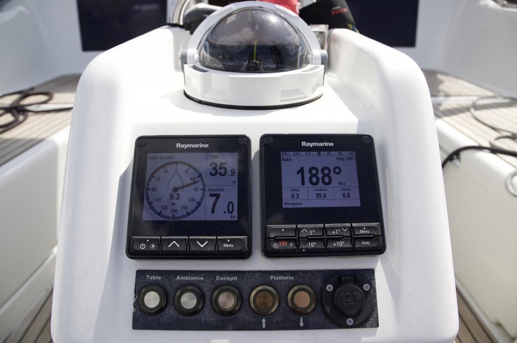 Wer hoch am Wind mit dieser Yacht segelt, sollte Wasserdichte Schuhe mitnehmen. Durch das nach hinten runtergezogene Süll nimmt die Yacht viel Wasser in den Steuertand auf und der Rudergänger bekommt nasse Füße ;-). Ist kein Problem, solange man Stiefel trägt oder es warm ist. Der Vorteil des abgesenkten Sülls ist allerdings, dass man super bequem nach vorne laufen kann.