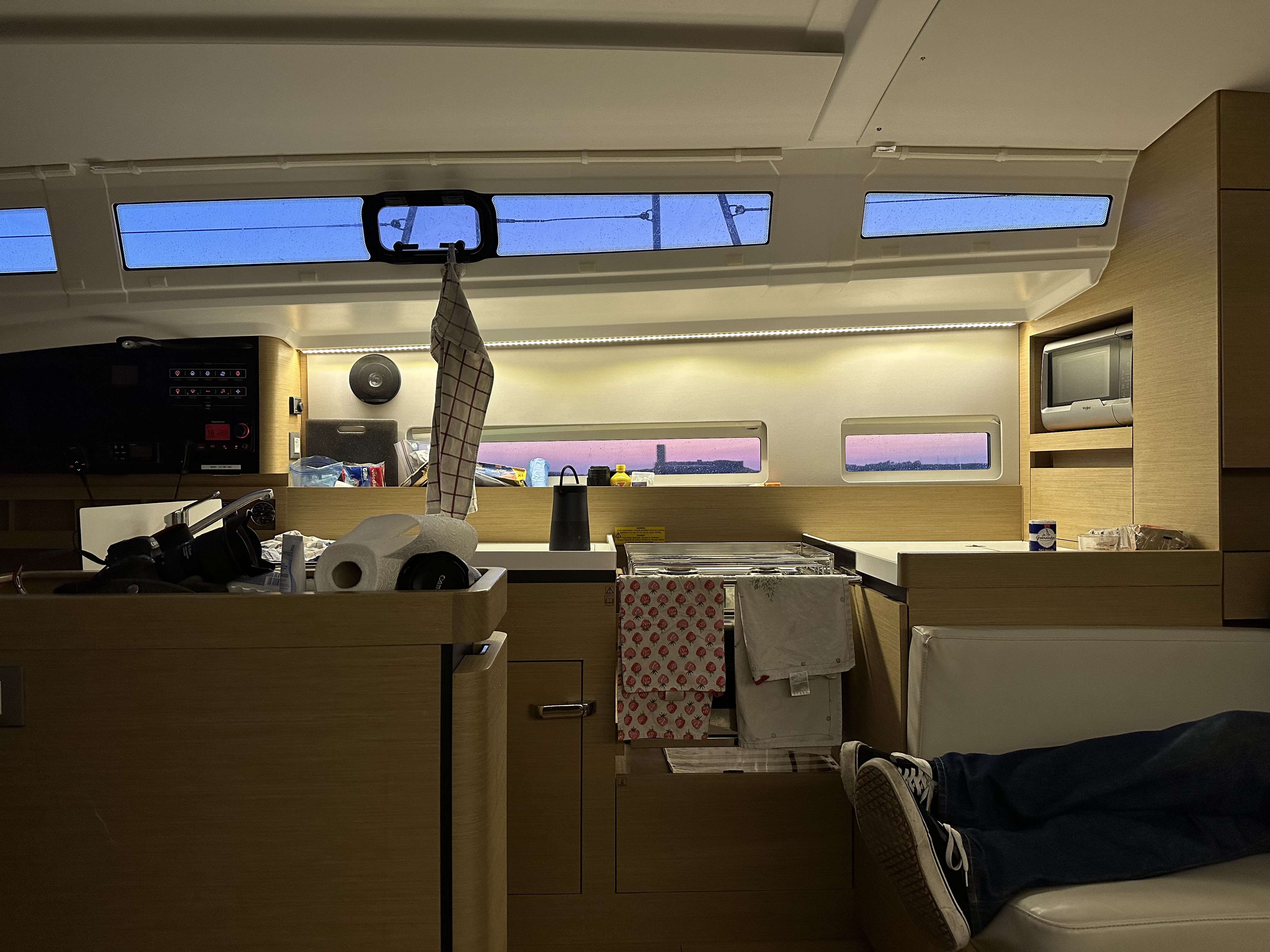 Küchenutensilien sehr reduziert, kein Kugelfender, keine kleine Hilfsleinen vorhanden, ankerball ohne befestigungsmöglichkeit. Kein Logbuch an Bord (hatte eigenes dabei) Toilette Achtern wurde nicht gewartet funktionierte nur via Überlauf direkt nach außen.