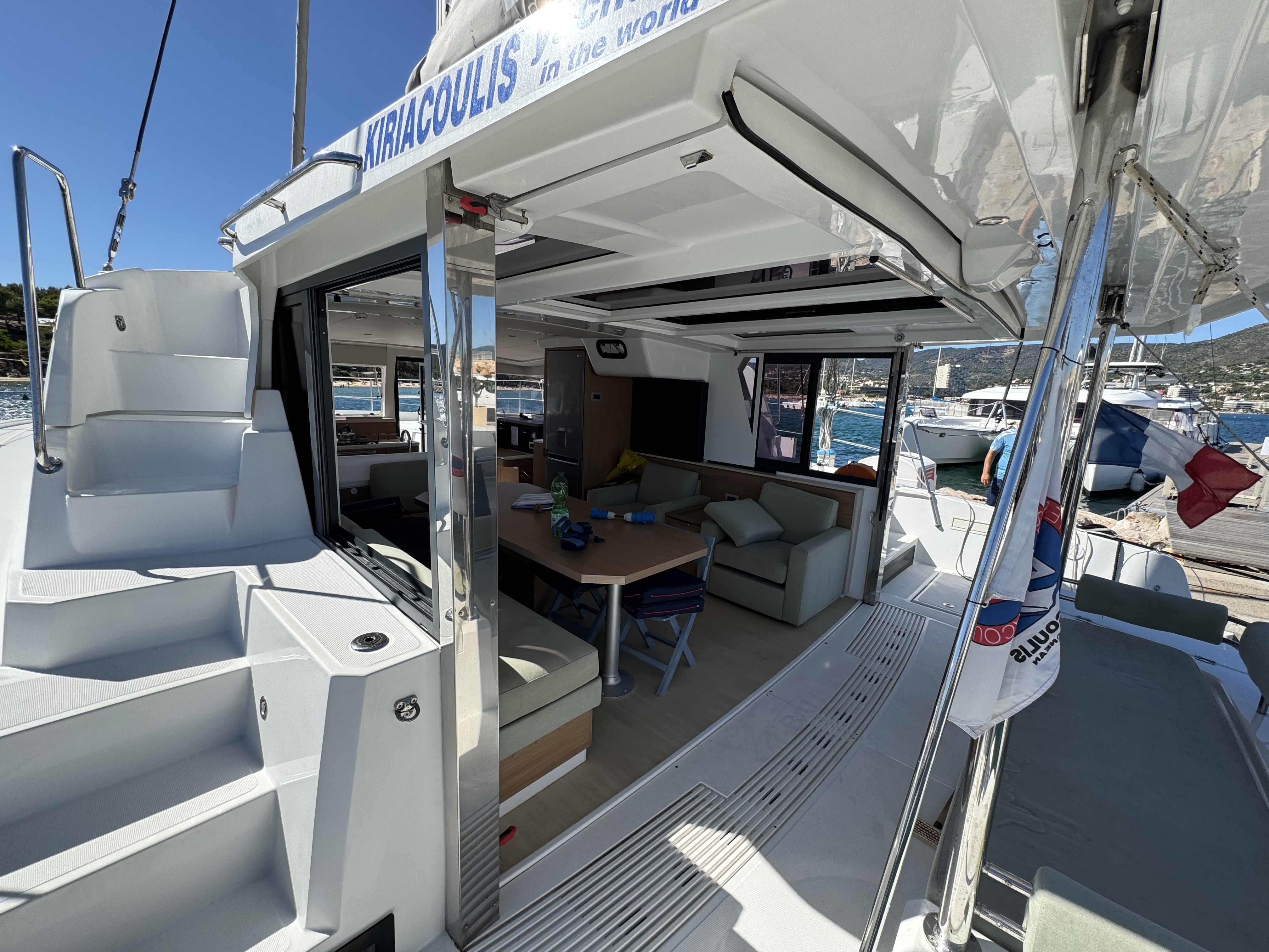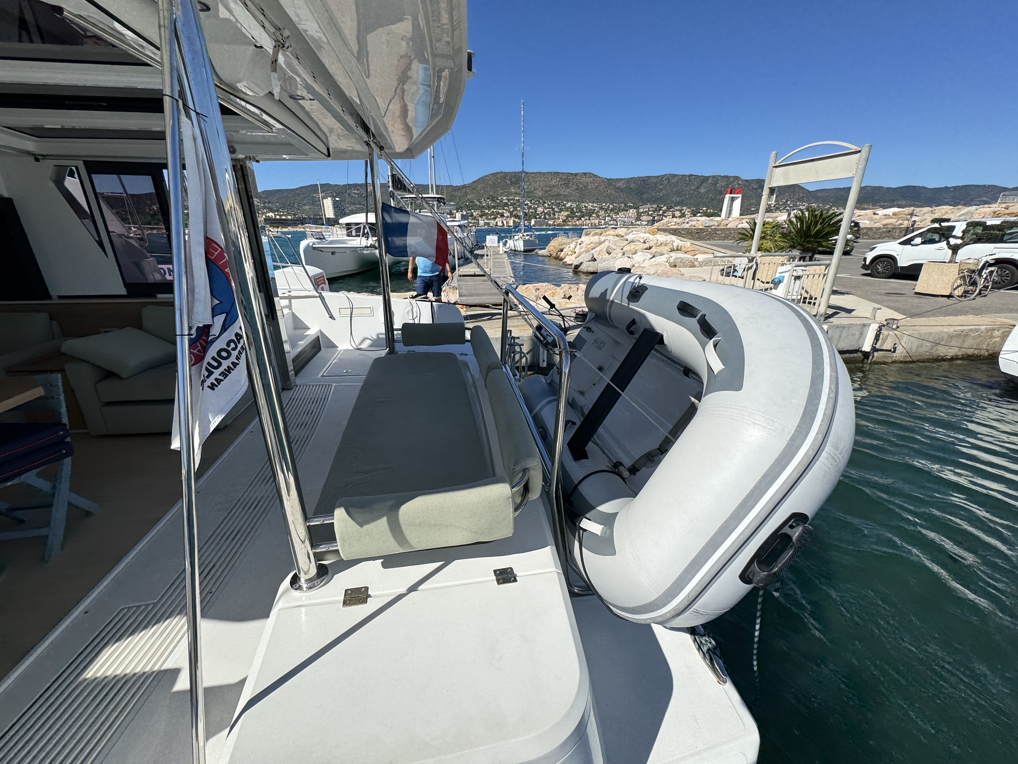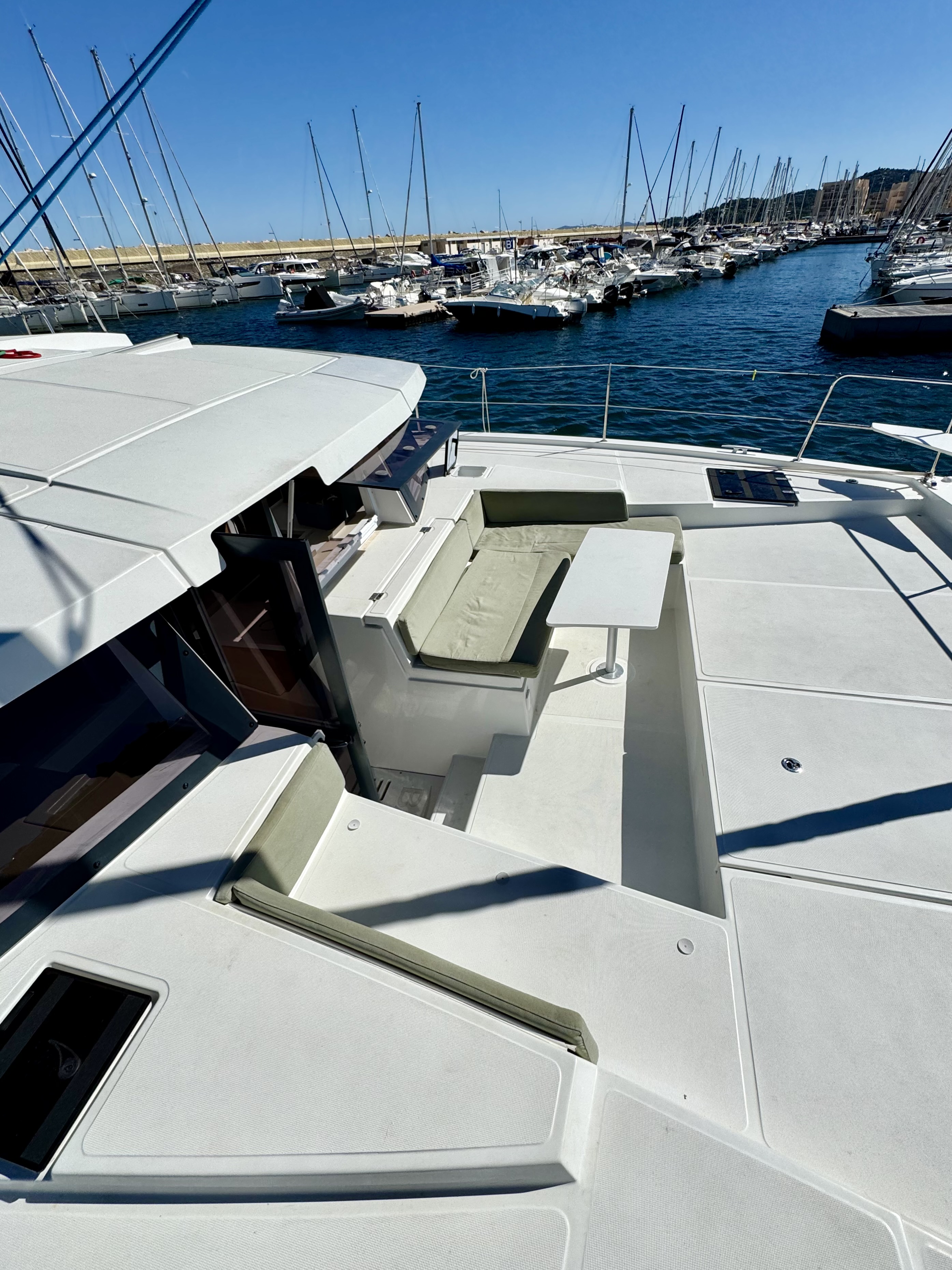 | Outside | Anker mit Kette, Biminitop, Cockpitdusche, Cockpitlautsprecher, Cockpitpolster, Deckbürste, elektr. Ankerwinsch, Fender, Kunststoff-Eimer (Pütz), Sprayhood |