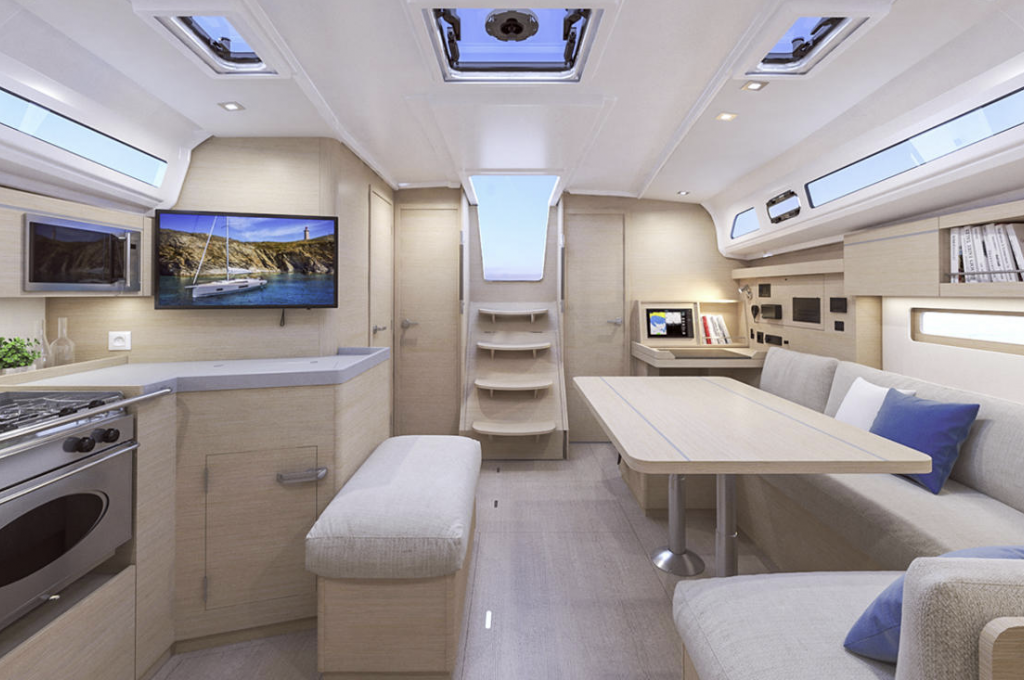 | Outside | Anker mit Kette, Badeplattform, Biminitop, Cockpitdusche, Cockpitlautsprecher, Cockpitpolster, Cockpittisch (klappbar), Deckbürste, elektr. Ankerwinsch, elektr. Winsch, Fender, Kunststoff-Eimer (Pütz), Sprayhood |