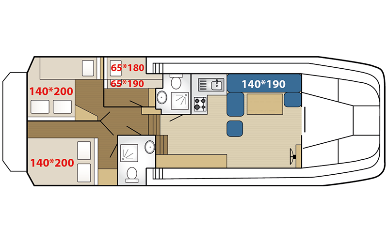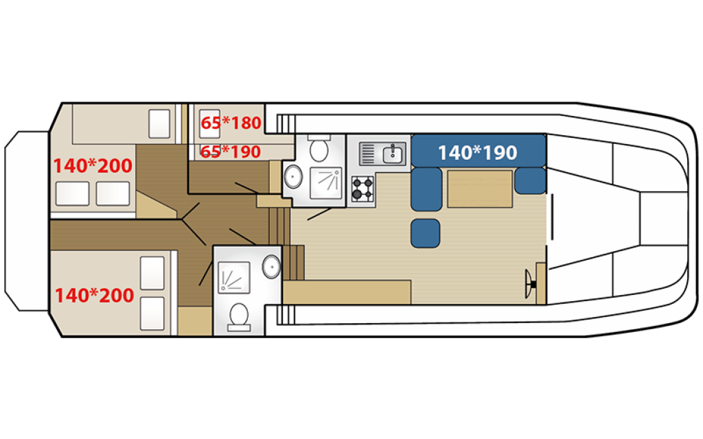 | Kabinen: | 3 | Kojen: | 6+1 |