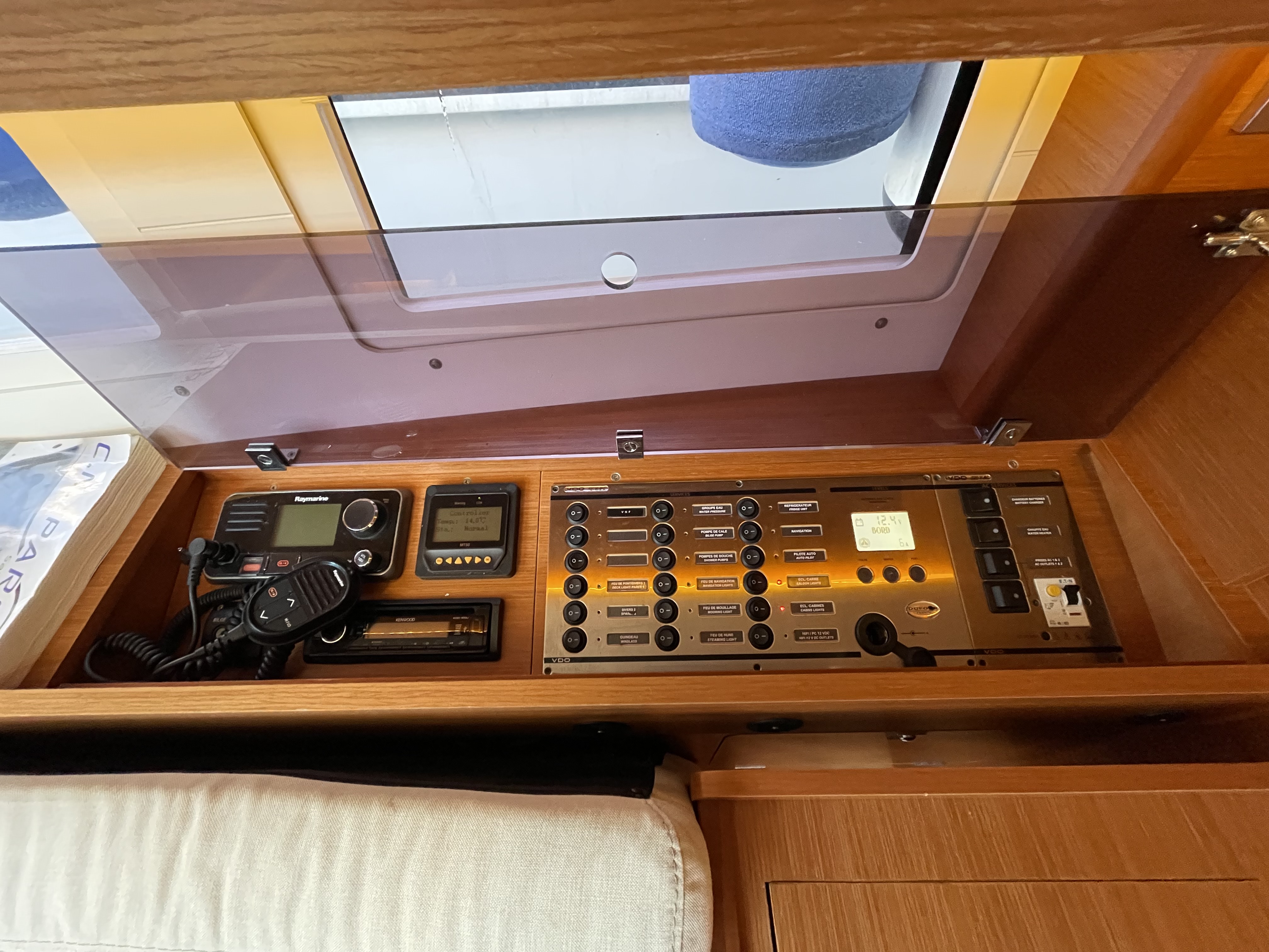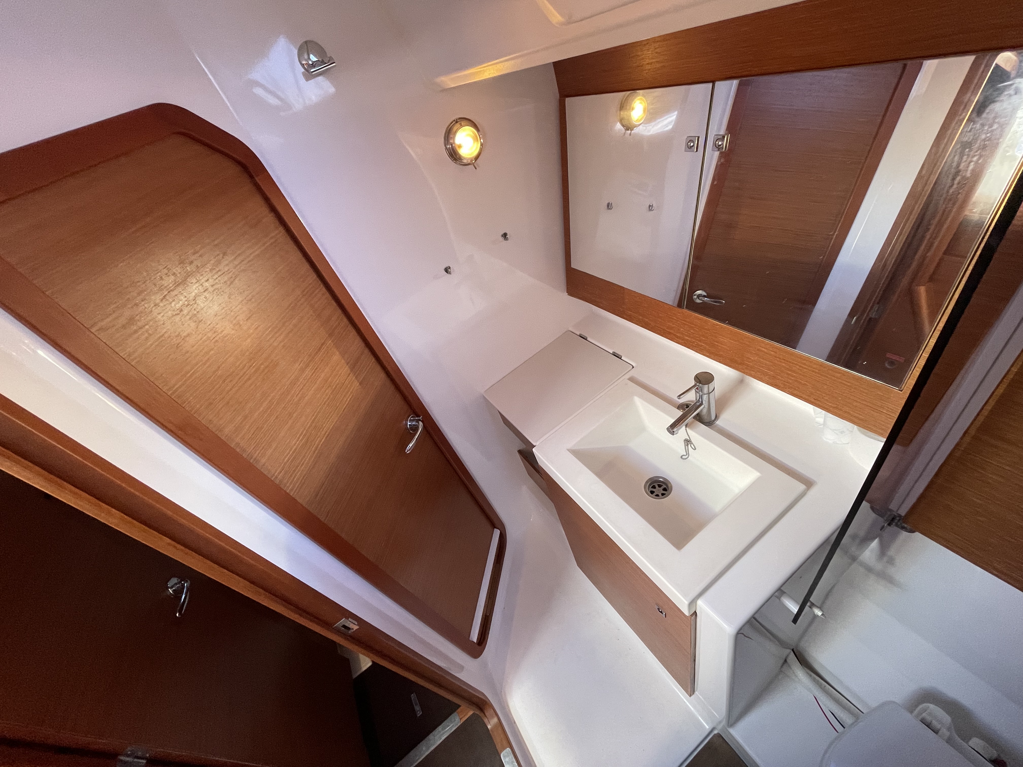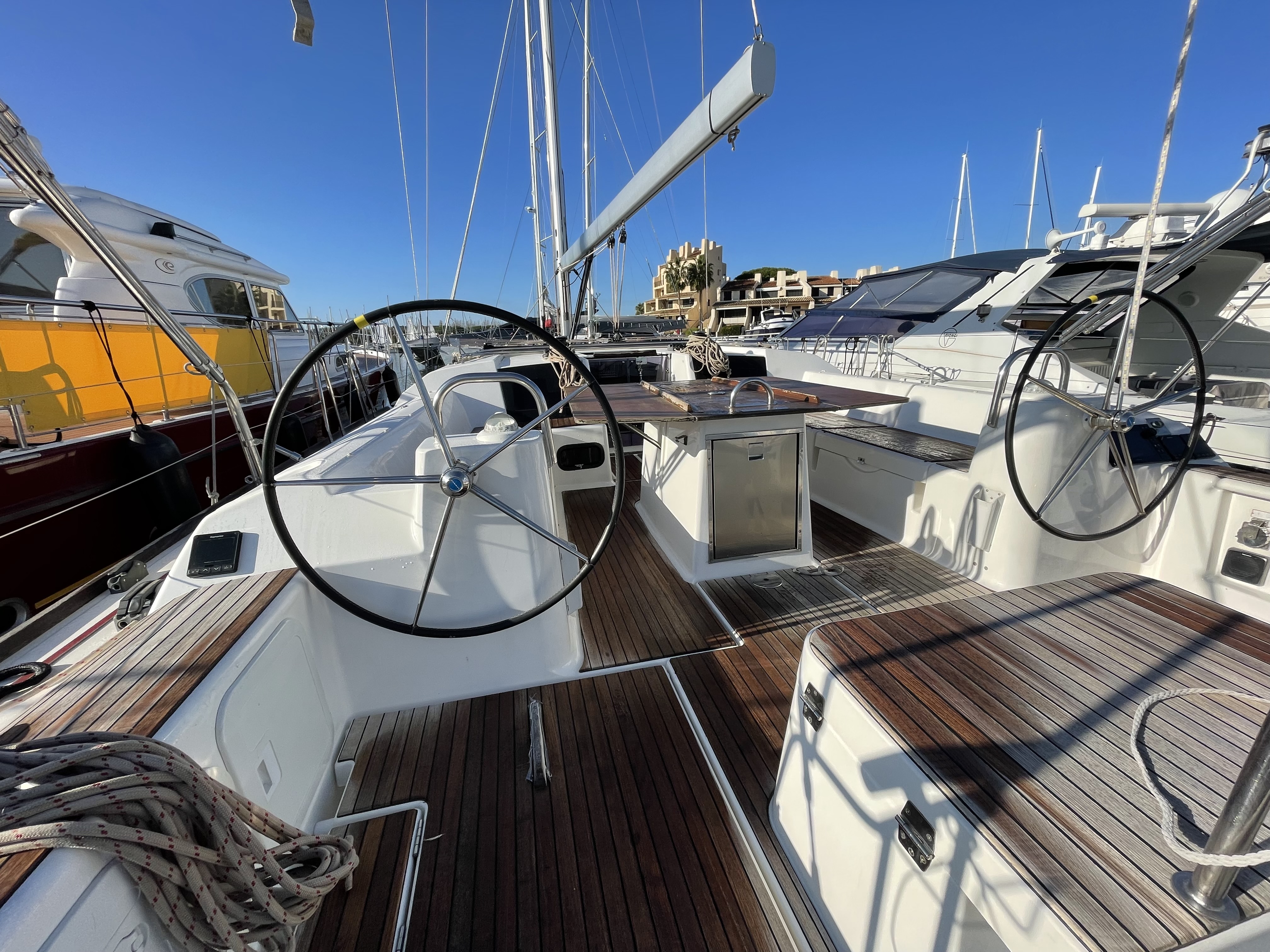 | Outside | Biminitop, Cockpittisch, elektr. Ankerwinsch, Gangway, Solaranlage, Sprayhood, Teakdeck |
