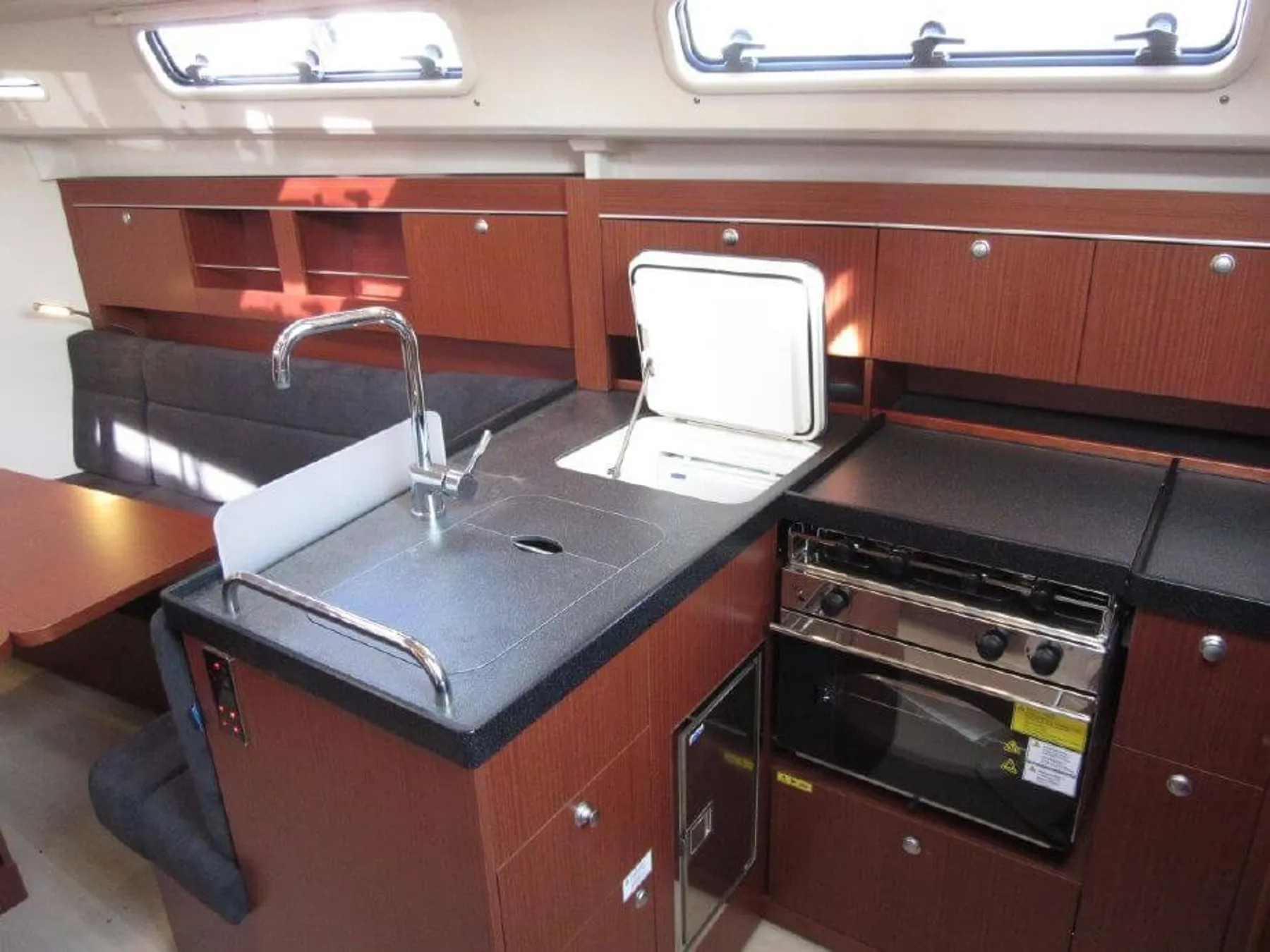 | Outside | Badeplattform, Biminitop, Cockpitlautsprecher, elektr. Ankerwinsch, Teak im Cockpit |