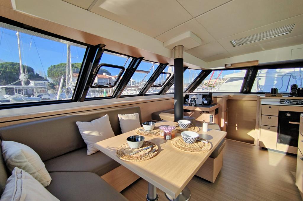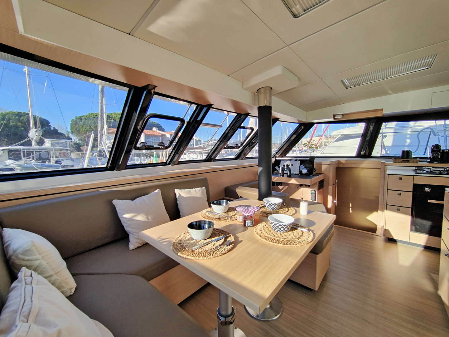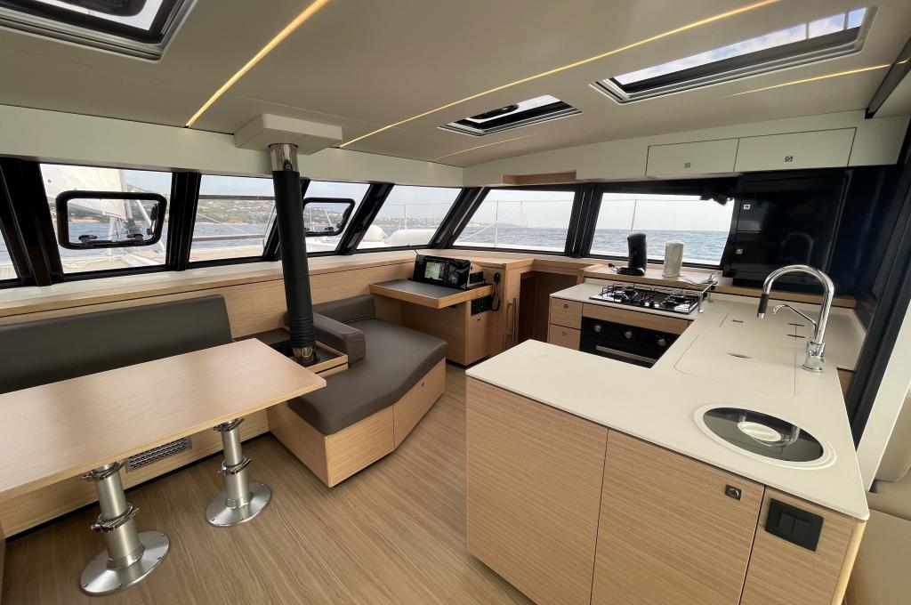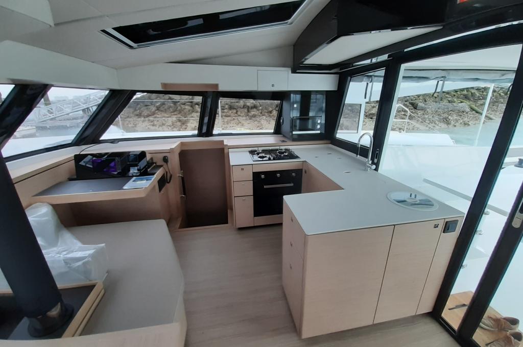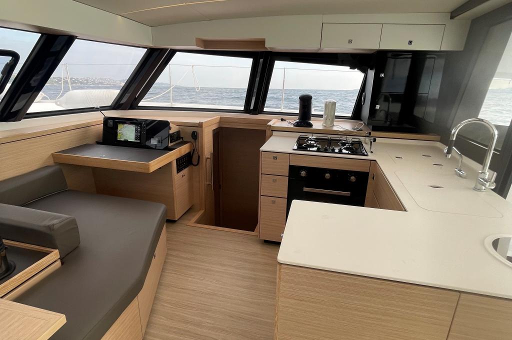 | Inside | Gasherd mit Backofen, Gefrierschrank, Generator, Heizung, Klimaanlage (ohne Landstrombedarf), Kühlschrank, Mikrowelle, Radio mit CD, Warmwasser, Watermaker |