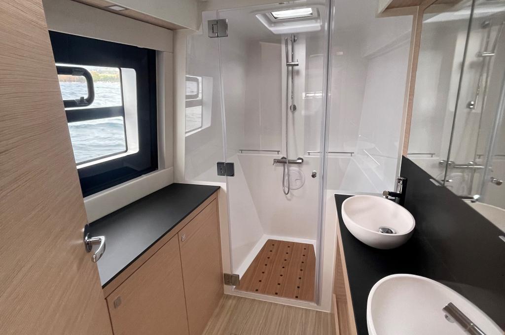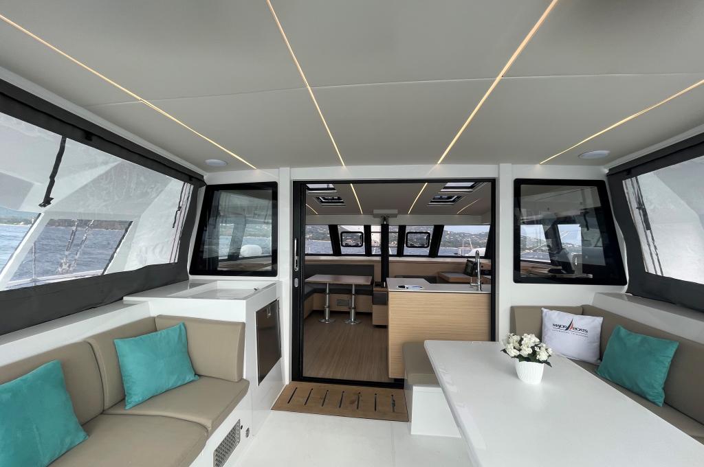 | Outside | Biminitop, Cockpitdusche, Cockpittisch, elektr. Ankerwinsch, elektr. Winsch, Solaranlage, Teakdeck |