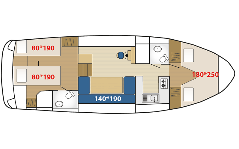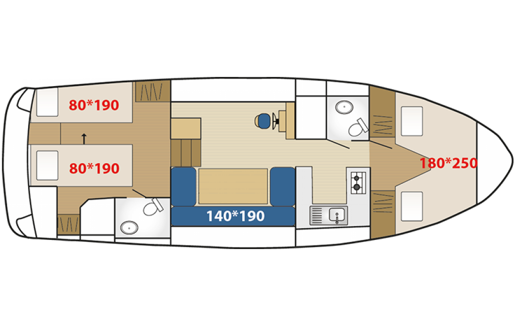 | Kabinen: | 2 | Kojen: | 4+1 |