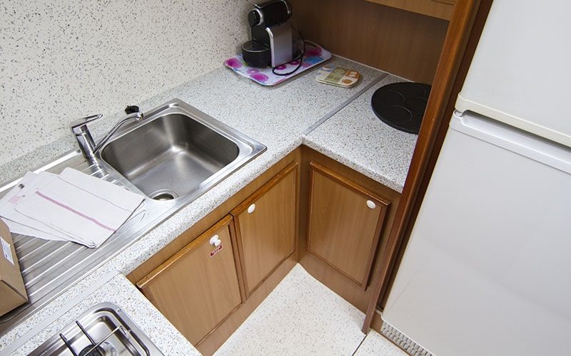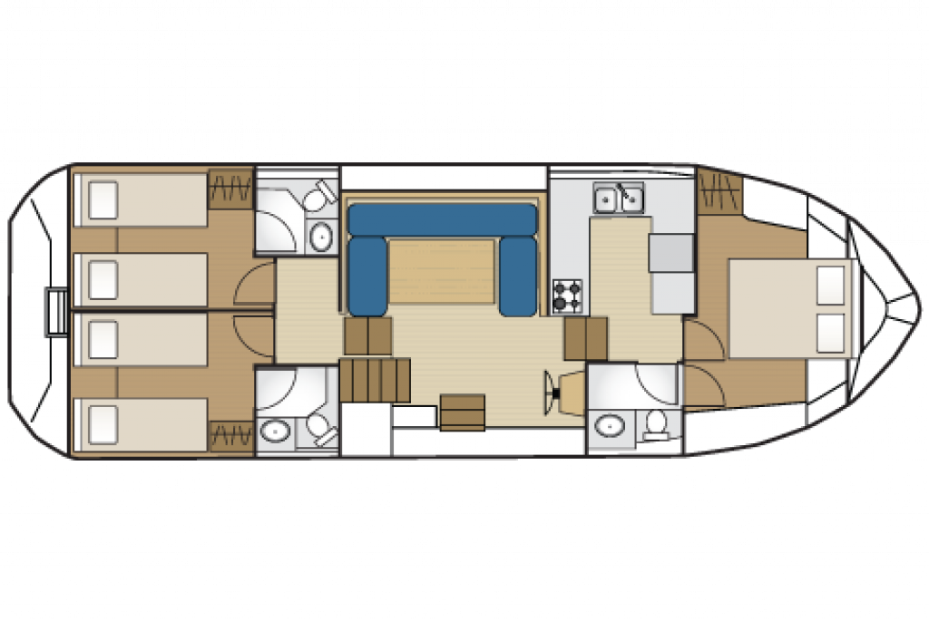 | Outside | 220 V-Landanschluss, Anker mit Kette, Cockpitdusche, Grill |