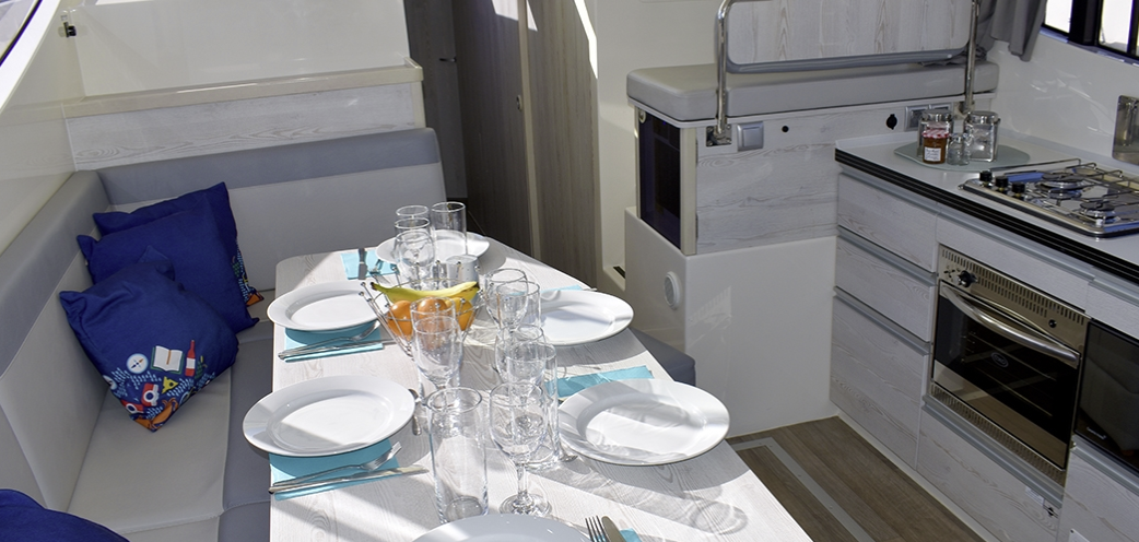 | Outside | 12 V-Anschluss, 220 V-Landanschluss, Biminitop, Cockpitdusche, Grill, Sonnendeck |