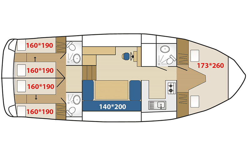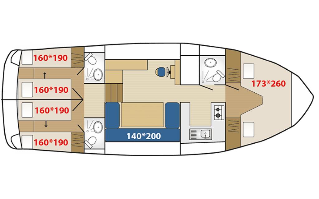 | Inside | Dusche, Gasherd, Geschirr, Heizung, Kühlschrank, Pantryausstattung, Spülbecken, WC (elektr.) |