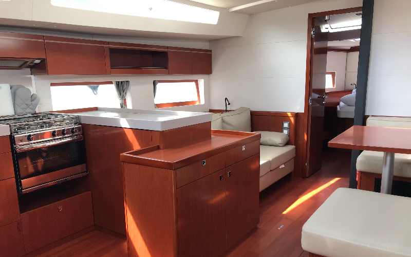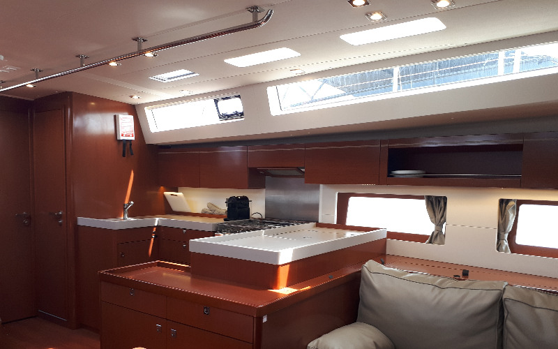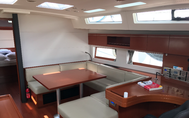 | Outside | Ankerwinsch, Cockpittisch, elektr. Winsch, Sonnensegel, Sprayhood, Teakdeck |