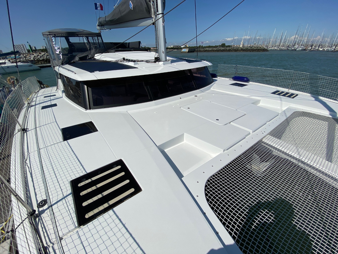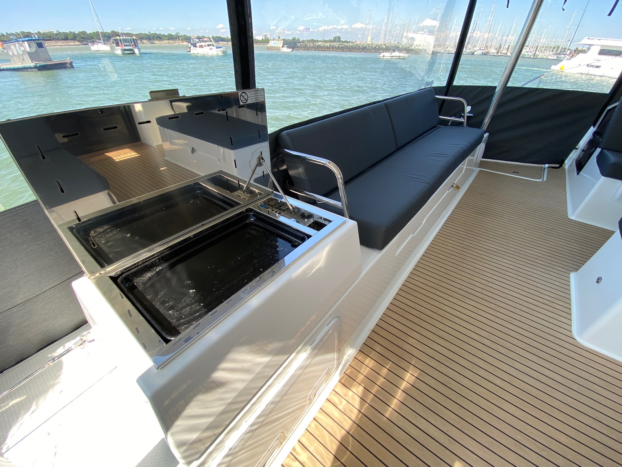| Outside | Badeleiter, Badeplattform, Cockpitdusche, Cockpitkühlschrank, Cockpitlautsprecher, Cockpitpolster, Cockpittisch, Deckpolster, elektr. Ankerwinsch, elektr. Winsch, Flybridge, Gangway, Grill, Sonnendeck, Teak im Cockpit |