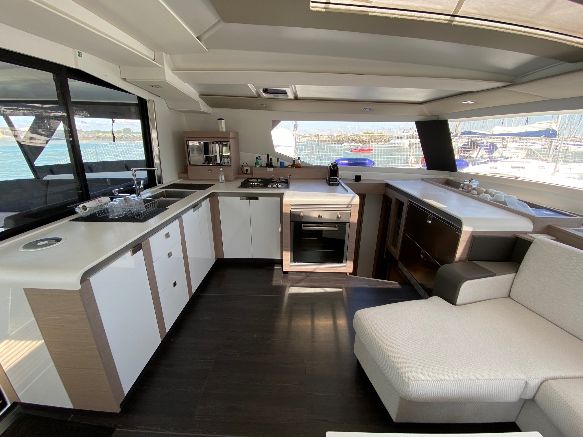 | Inside | 220V Steckdosen, Backofen, Bluetooth Player, Gasherd, Gefrierschrank, Kaffeemaschine, Kühlschrank, Pantryausstattung, Radio mit MP3 , Spülbecken, TV, Ventilator, Warmwasser, Waschmaschine, Watermaker |