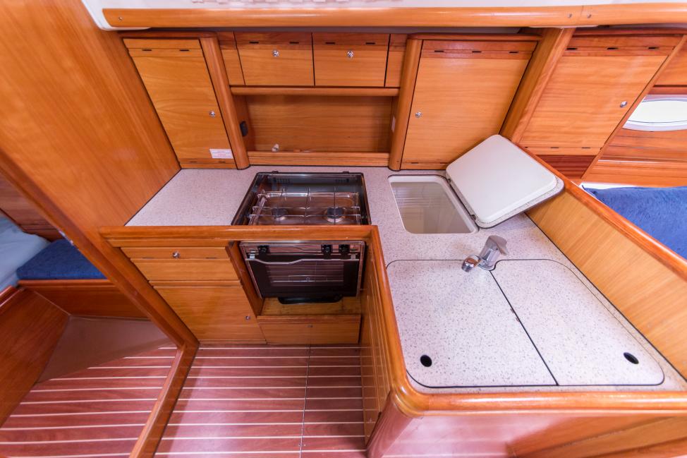 | Outside | 220 V-Landanschluss, Badeleiter, Biminitop, Cockpitdusche, Cockpitlautsprecher, Cockpittisch, elektr. Ankerwinsch, Sprayhood, Teak im Cockpit |