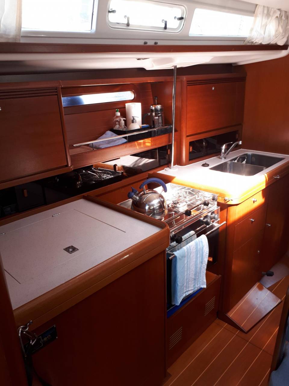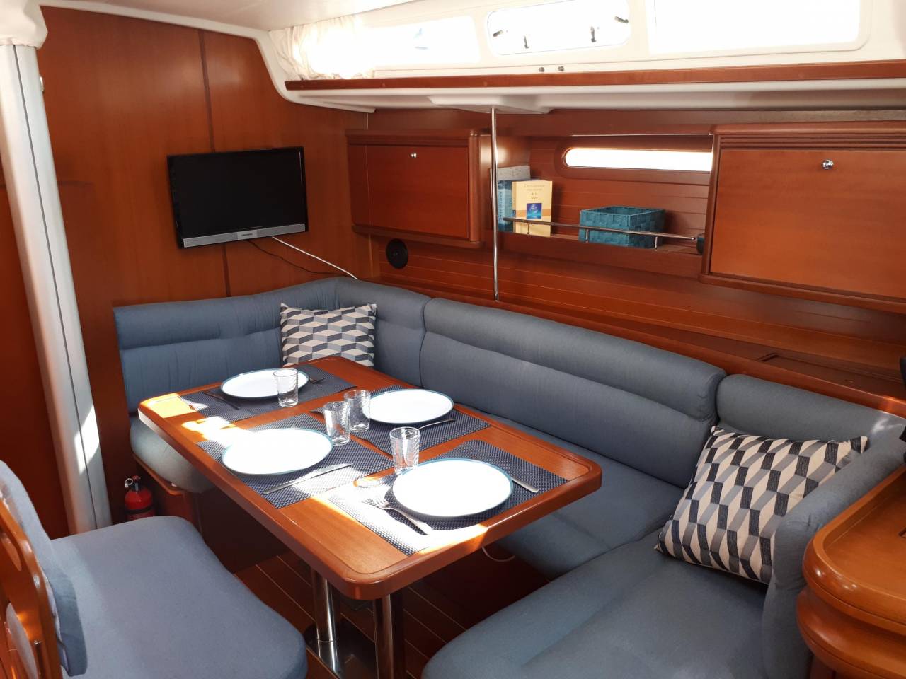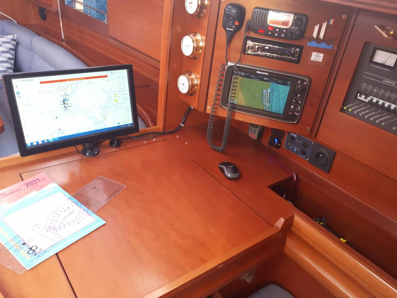 | Navigation | Echolot, GPS mit Kartenplotter im Salon, Navigationsbesteck, Sumlog, Windmesser |