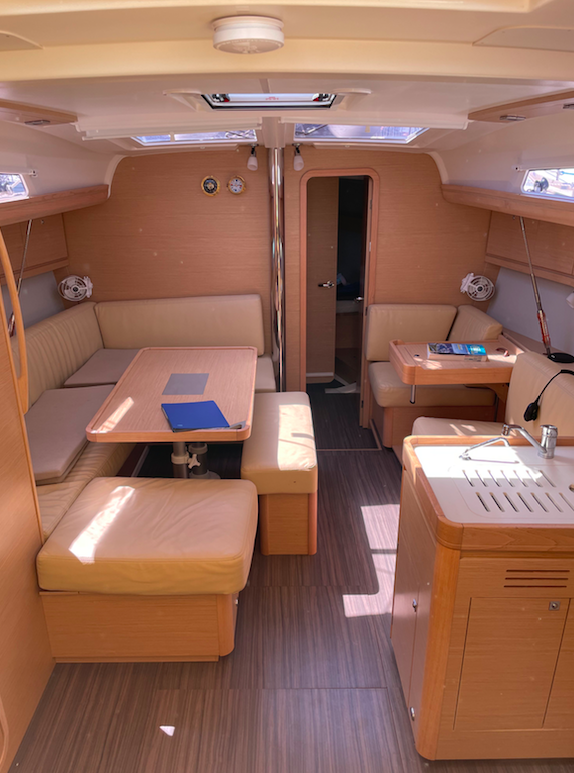 | Inside | 220V Steckdosen, Backofen, Gasherd, Inverter 12V/220V, Kühlschrank, Radio mit CD und MP3, Salontisch absenkbar, Ventilatoren in Kabinen, Warmwasser, WC (elektr.) |