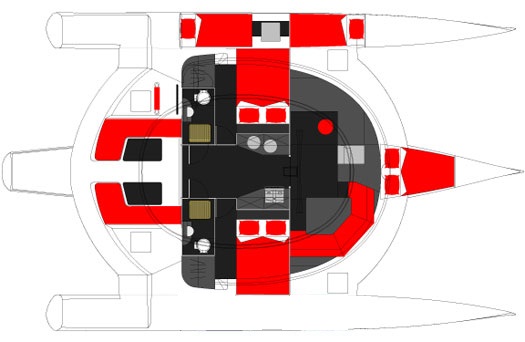| Outside | Außendusche, Badeleiter, Biminitop, Cockpitlautsprecher, Cockpitpolster, Cockpittisch, elektr. Ankerwinsch |