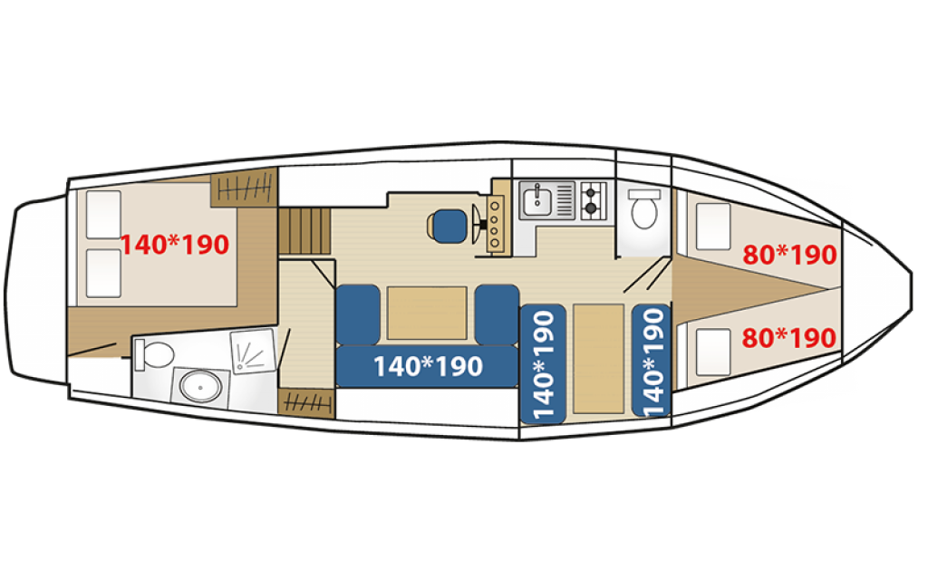 | Kabinen: | 2 | Kojen: | 4+2 |