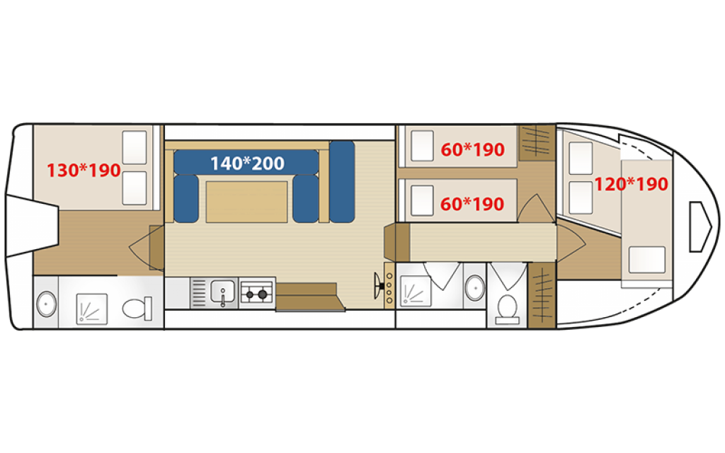 | Kabinen: | 3 | Kojen: | 6 |