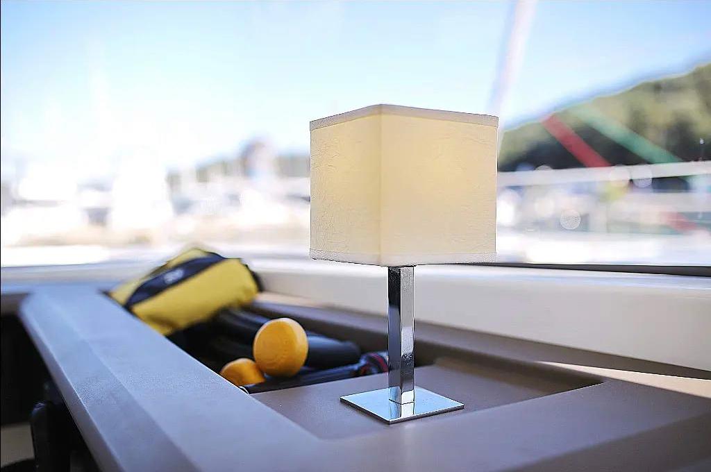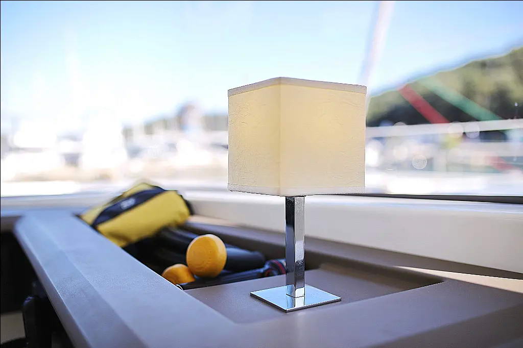 | Outside | Anker mit Kette, Biminitop, Cockpitdusche, Cockpitlautsprecher, Cockpitpolster, Deckbürste, elektr. Ankerwinsch, elektr. Winsch, Fender, Kunststoff-Eimer (Pütz), Solaranlage, Sprayhood |