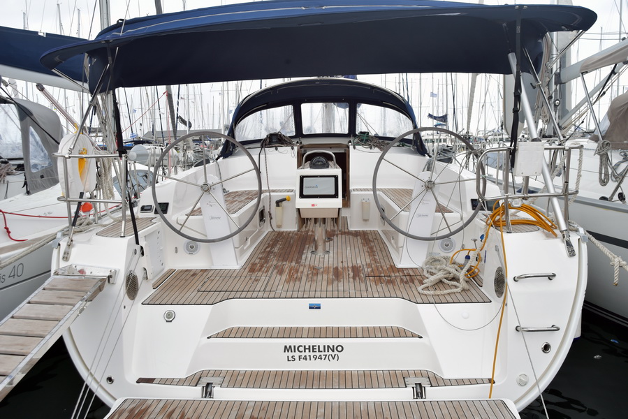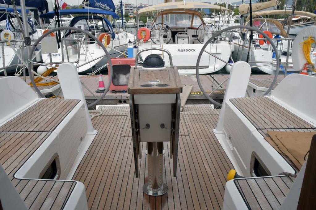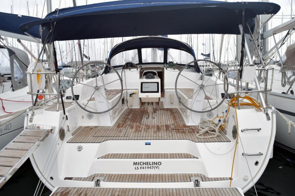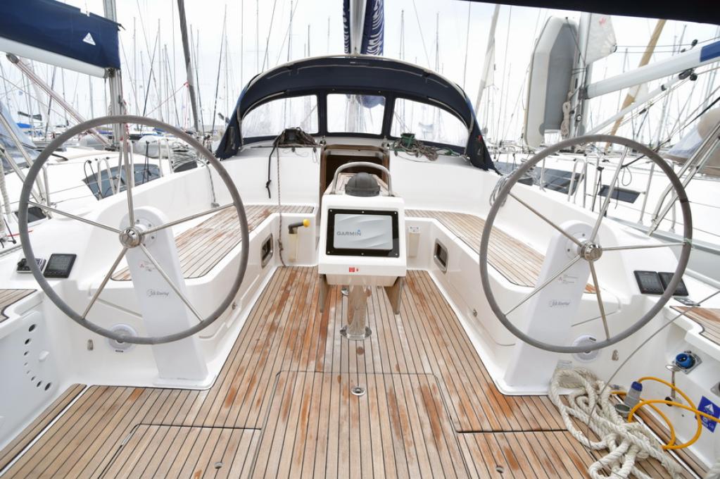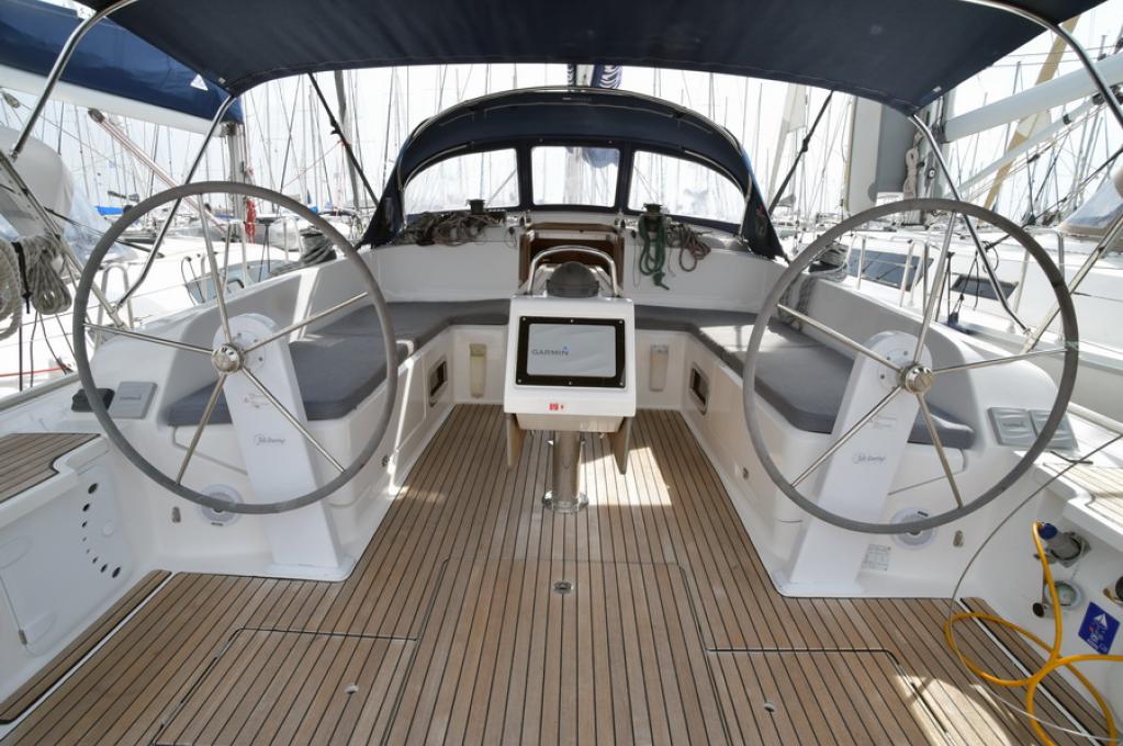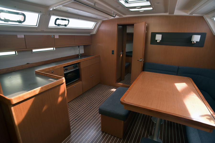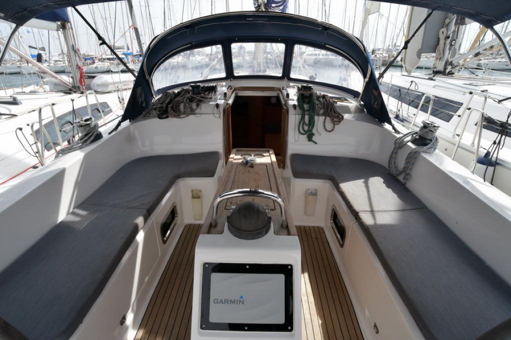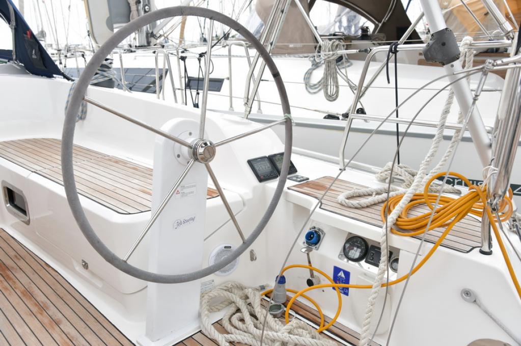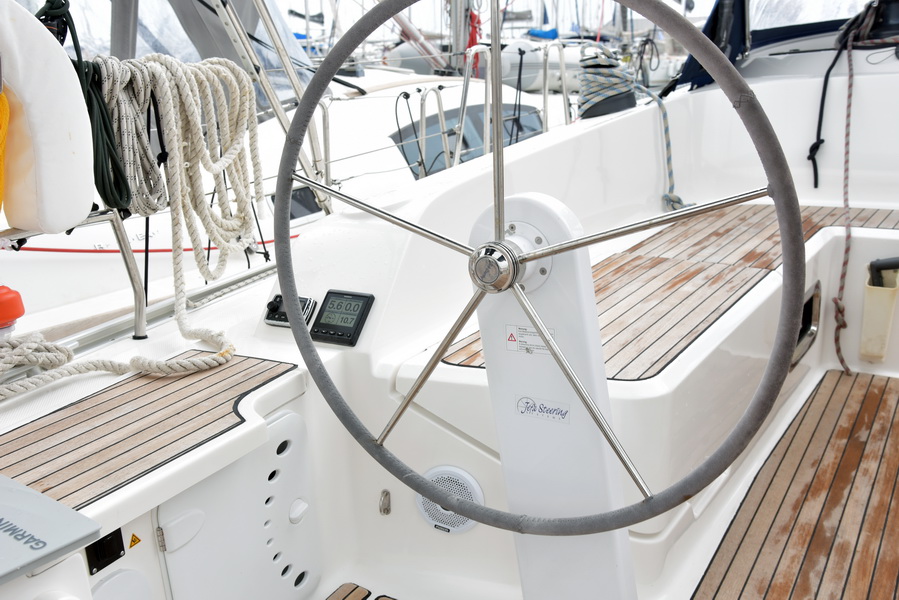 | Outside | 12 V-Anschluss, 220 V-Landanschluss, Badeleiter, Badeplattform, Biminitop, Cockpitdusche, Cockpitlautsprecher, Cockpitpolster, Cockpittisch, elektr. Ankerwinsch, Gangway, Schnorchelausrüstung, Selbstholende Winschen, Sprayhood, Windex |