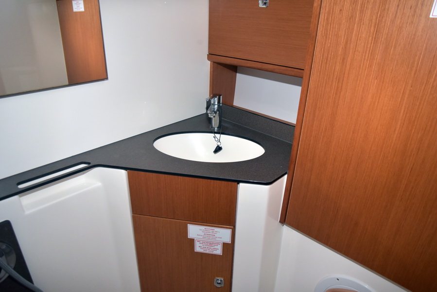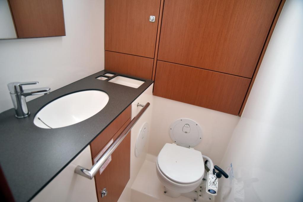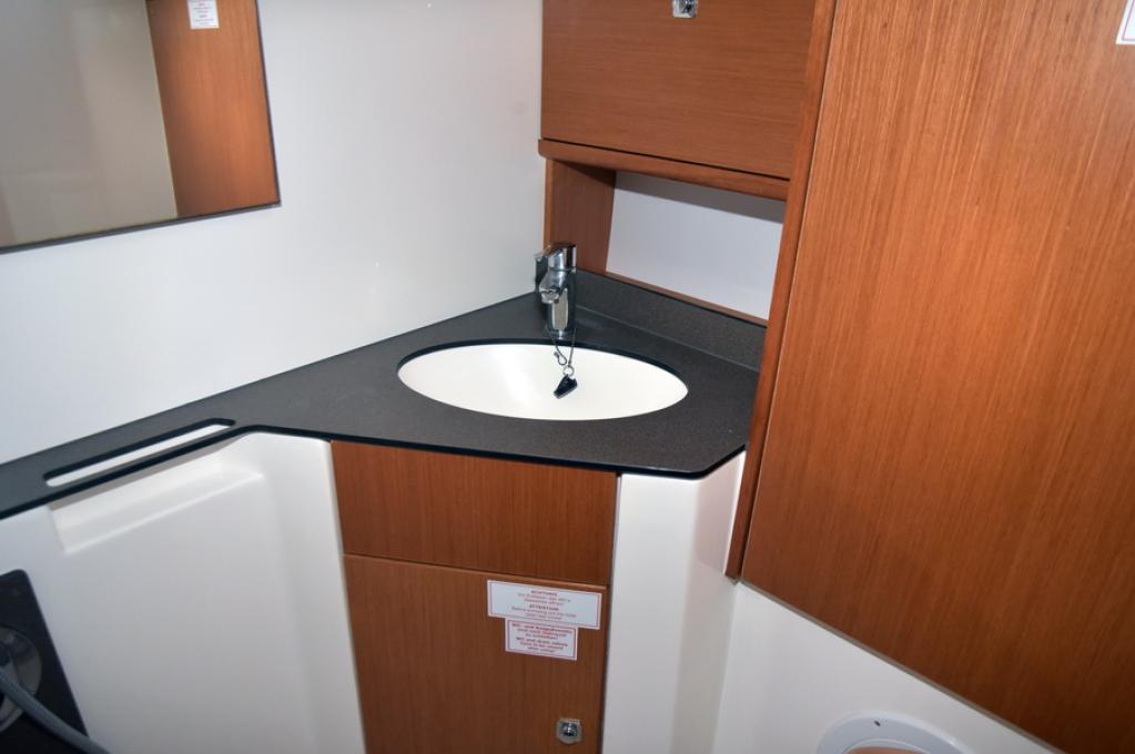 | Inside | 12V/220V-Steckdosen, Dusche, Eisbox, Fäkalientank, FUSION Sound System, Gasherd mit Backofen, Kühlschrank, Ladegerät, Pantryausstattung, Radio mit CD/MP3/USB (Ipod möglich), Salontisch absenkbar, USB Steckdose, Warmwasser, WC |