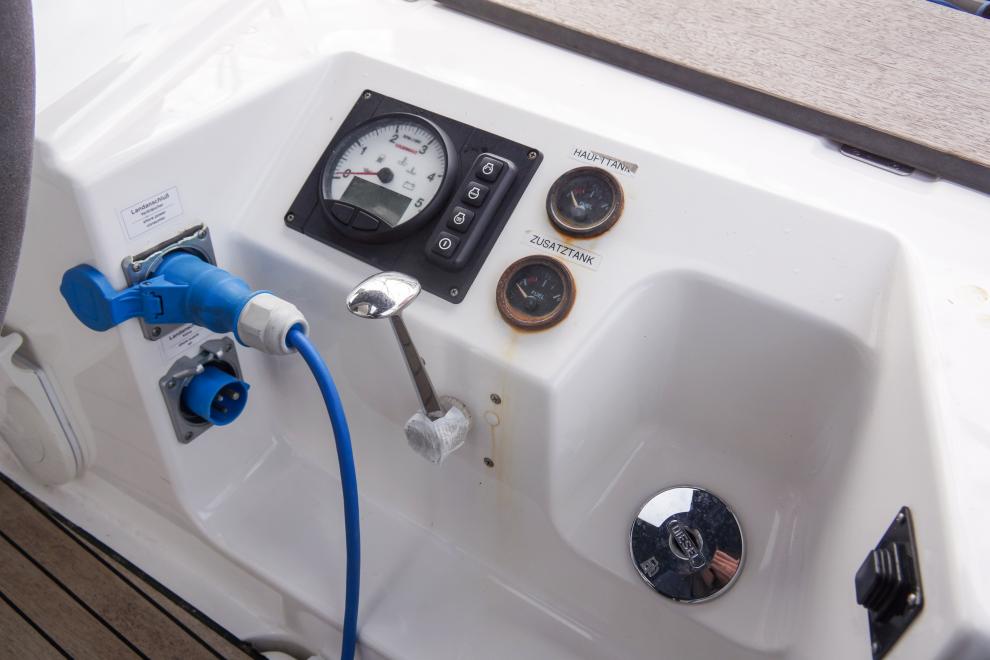 | Outside | 12 V-Anschluss, 220 V-Landanschluss, Badeleiter, Badeplattform, Biminitop, Cockpitlautsprecher, Cockpitpolster, Cockpittisch, elektr. Ankerwinsch, Gangway, Schnorchelausrüstung, Selbstholende Winschen, Sprayhood, Windex |