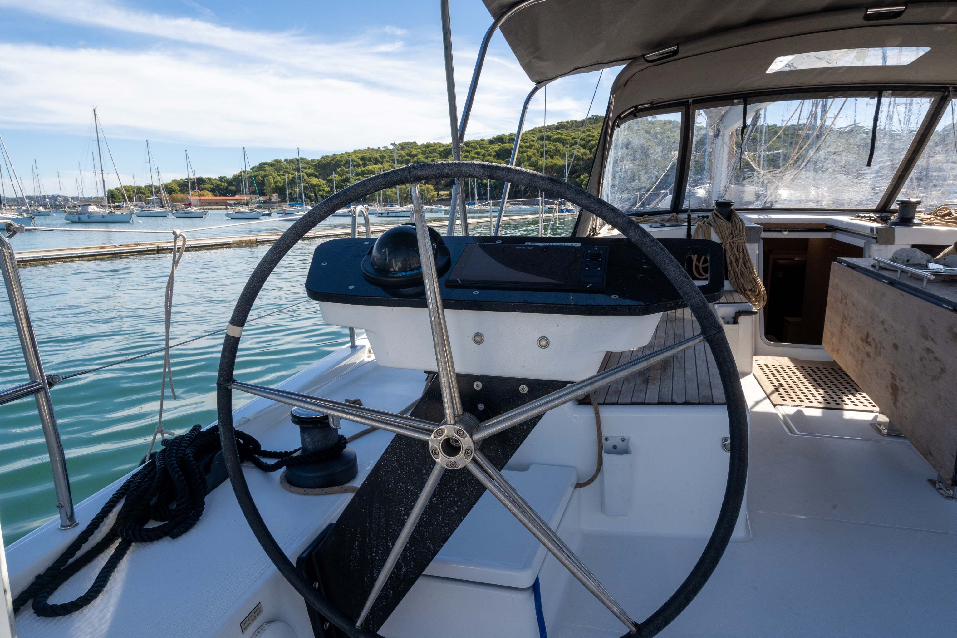 Outside Badeleiter, Biminitop, Cockpitdusche, Cockpitlautsprecher, Cockpitpolster, Cockpittisch, elektr. Ankerwinsch, Grill, Hydrogenerator, Selbstholende Winschen, Sprayhood, Teak im Cockpit, Winschen