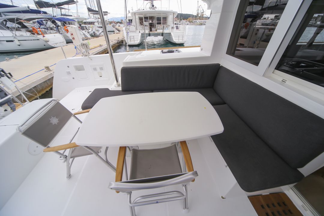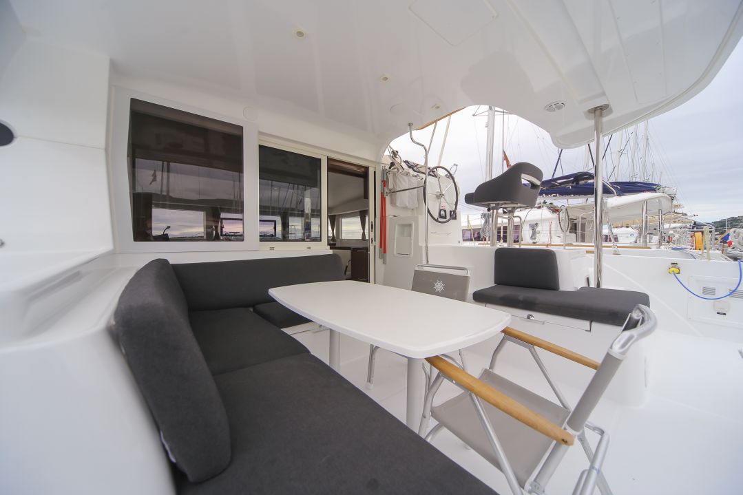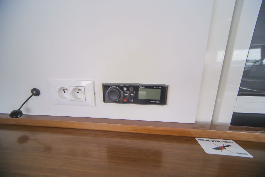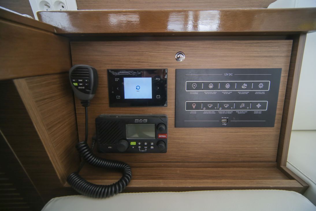 | Outside | Badeleiter, Cockpitpolster, Cockpittisch, elektr. Ankerwinsch, Solaranlage, Sprayhood, Windex |