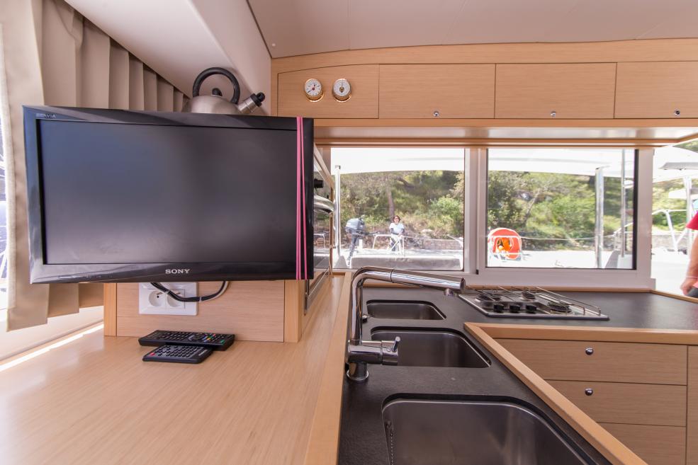 | Inside | 220V Steckdosen, Backofen, CD-Player, Dusche, DVD-Player, Fäkalientank, Gasherd, Gasherd mit Backofen, Gefrierschrank, Inverter 12V/220V, Kühlschrank, Ladegerät, Pantryausstattung, Radio mit CD und MP3, Radio mit MP3 , Salontisch absenkbar, Ventilatoren in Kabinen, Warmwasser, Watermaker, WC (elektr.) |